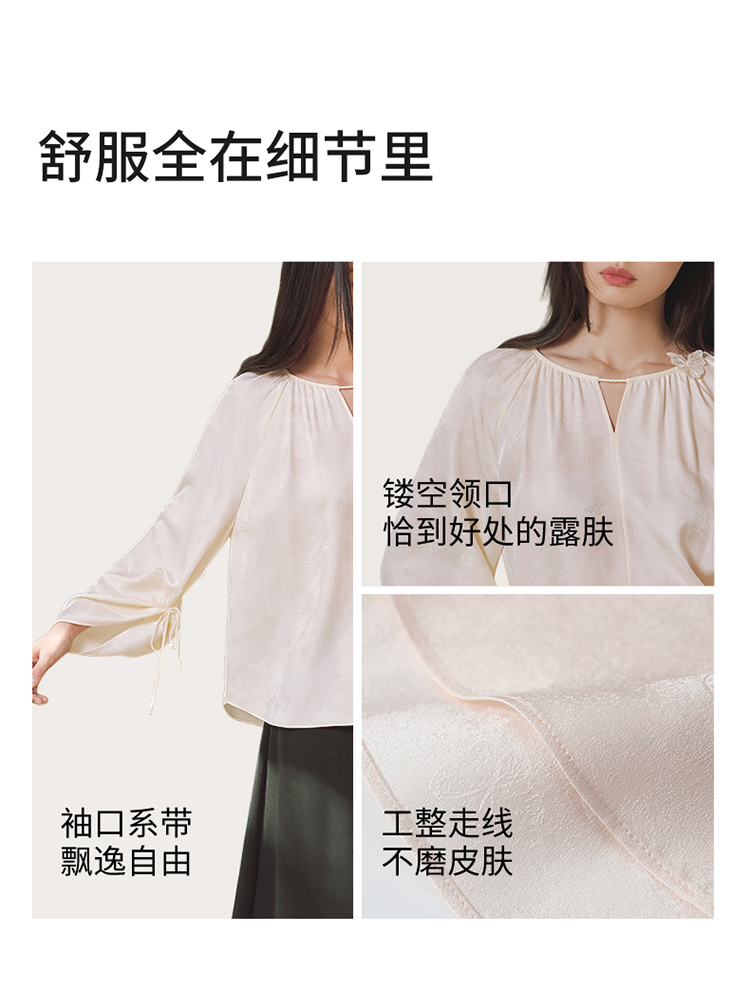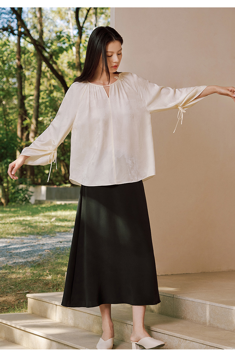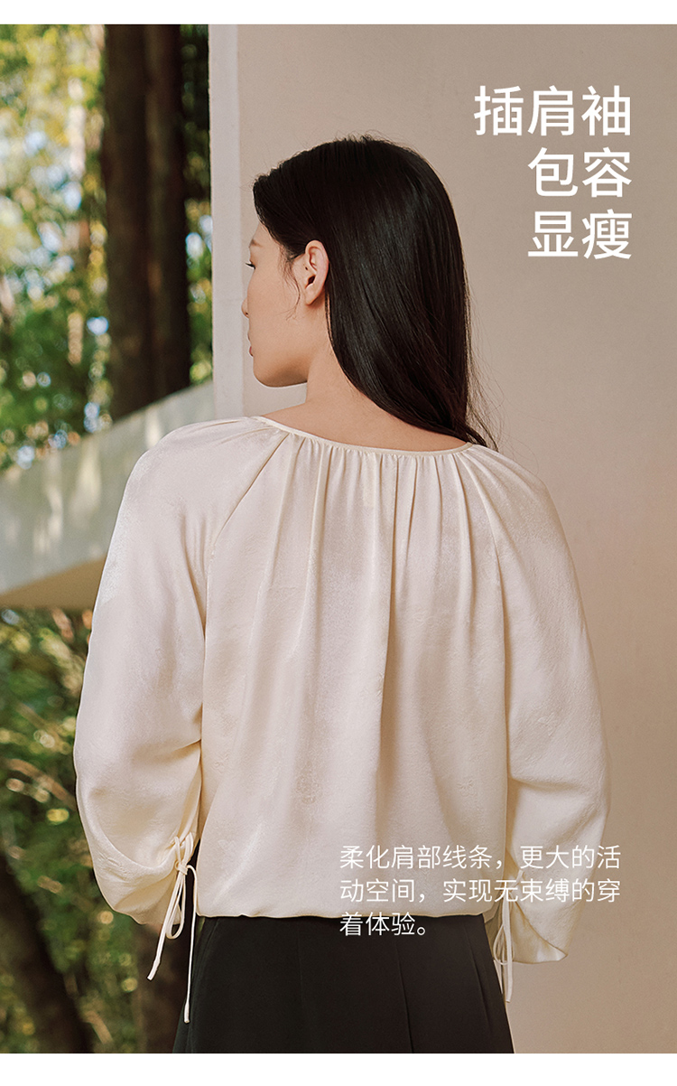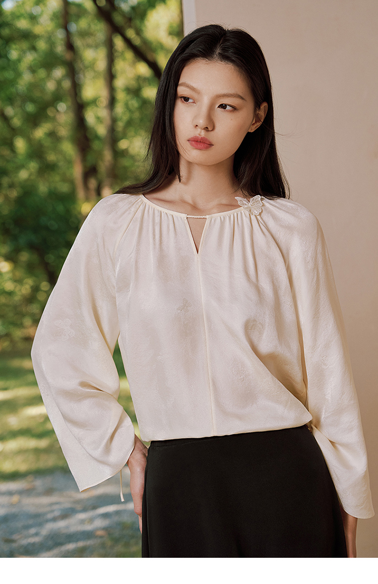 真丝桑波缎提花小"V“口领小衫
