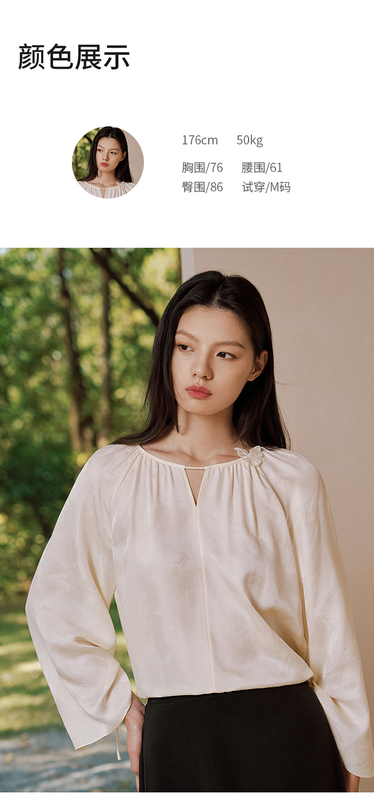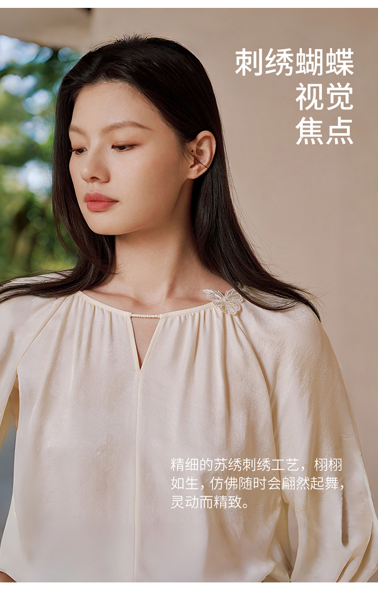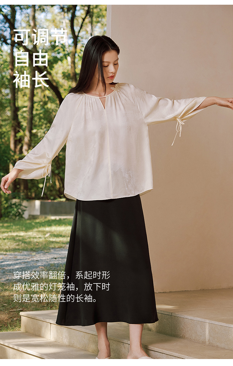 真丝桑波缎提花小"V“口领小衫