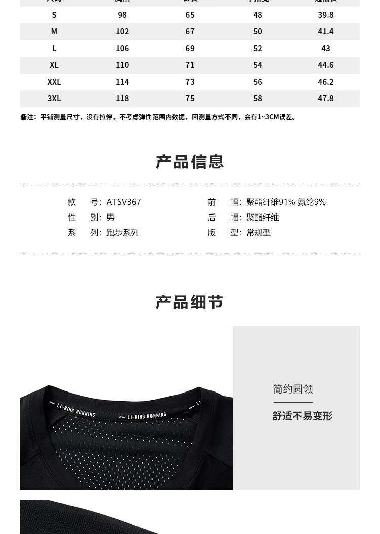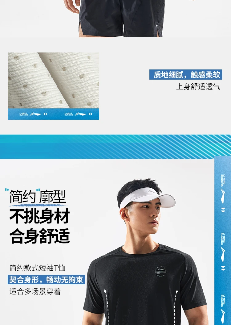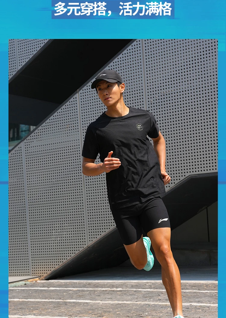 李宁专业跑步系列男子反光速干透气短袖T恤ATSV367