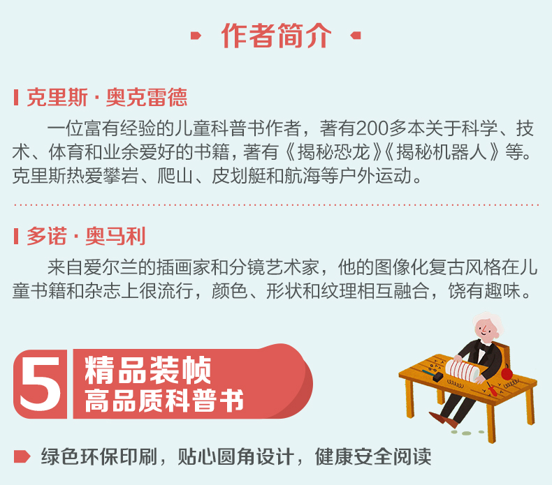 克里斯·奥克雷德是一位富有经验的儿童科普书作者,著有200多本关于科学、技术、体育和业余爱好的书籍,著有《揭秘恐龙》《揭秘机器人》等。克里斯热爱攀岩、爬山、皮划艇和航海等户外运动。