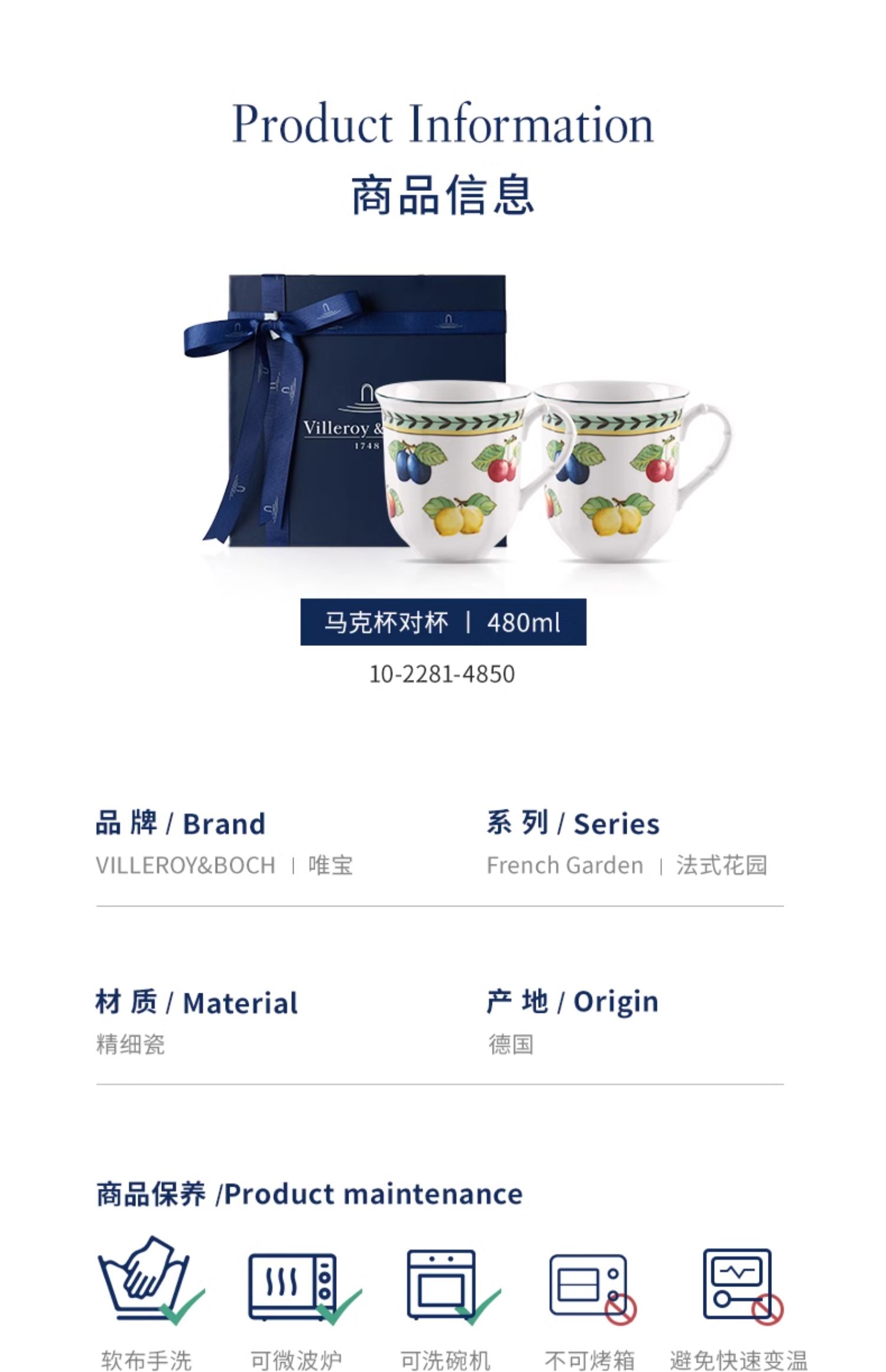 【VilleroyBoch 德国唯宝】经典复古家用法式花园马克杯480ml