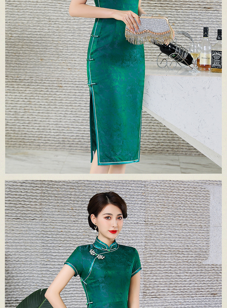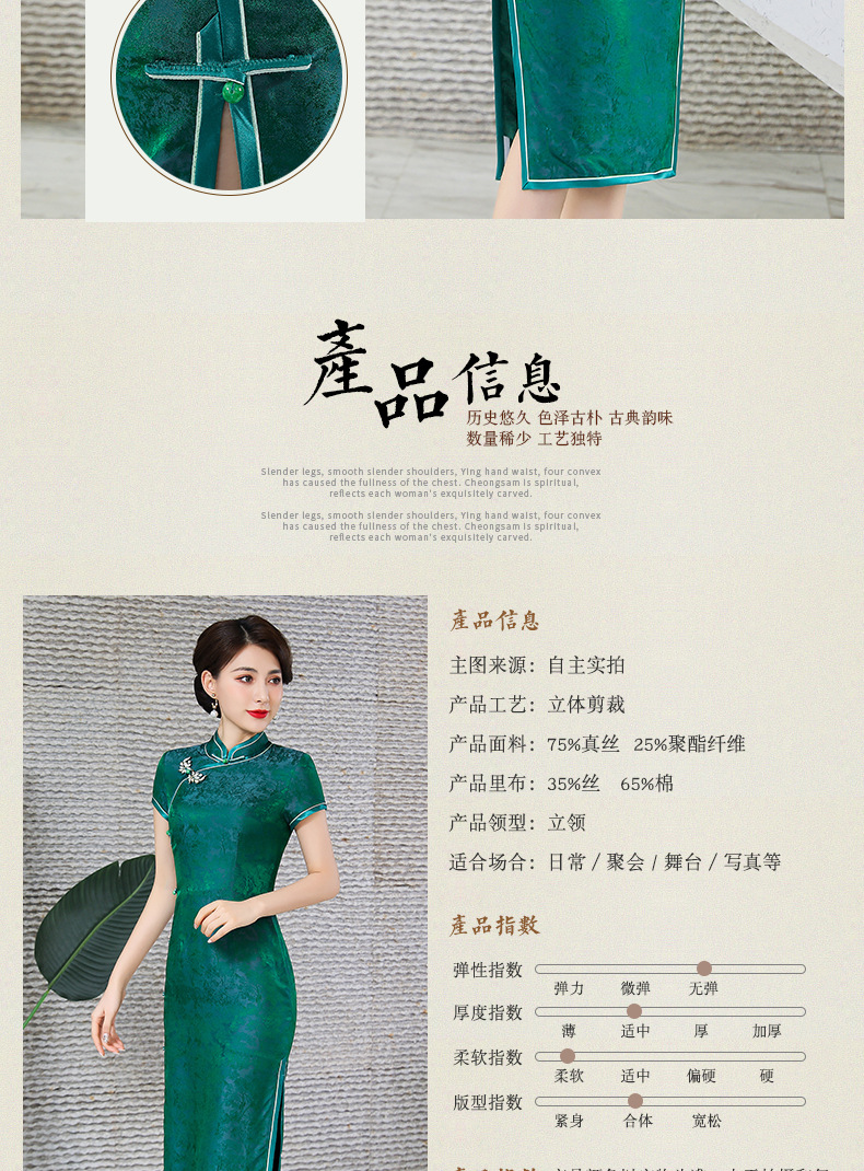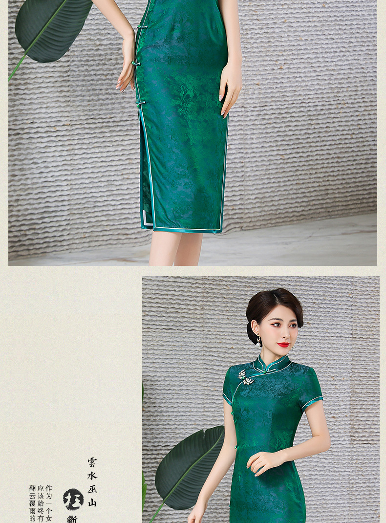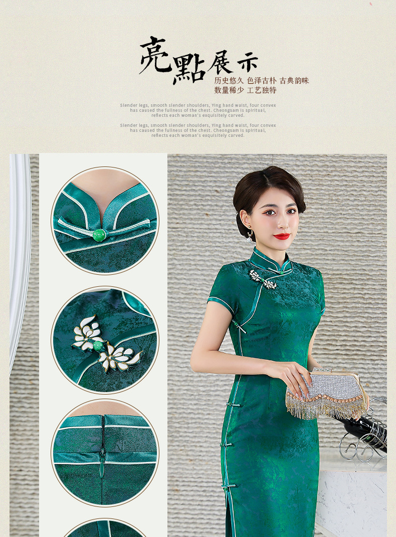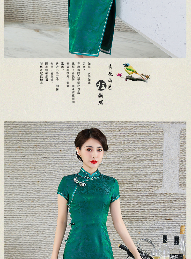 TZRY-21021新款手工盘口真丝提花复古旗袍 宴会礼服日常真丝提花侧排扣