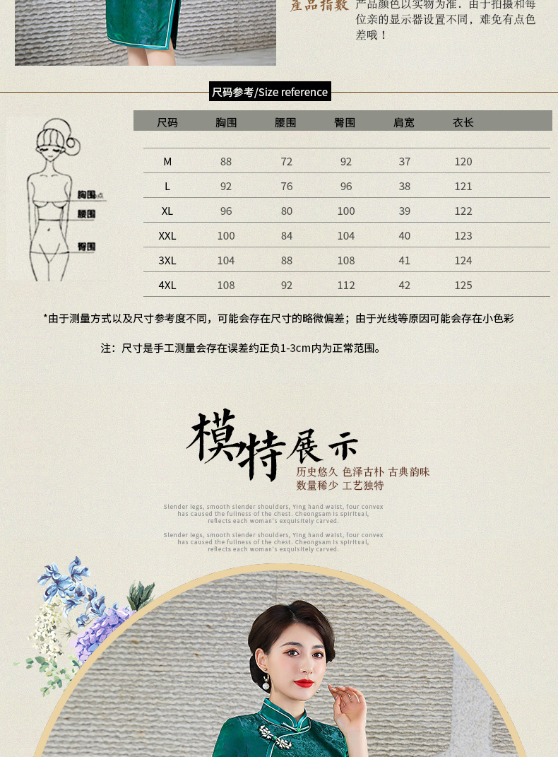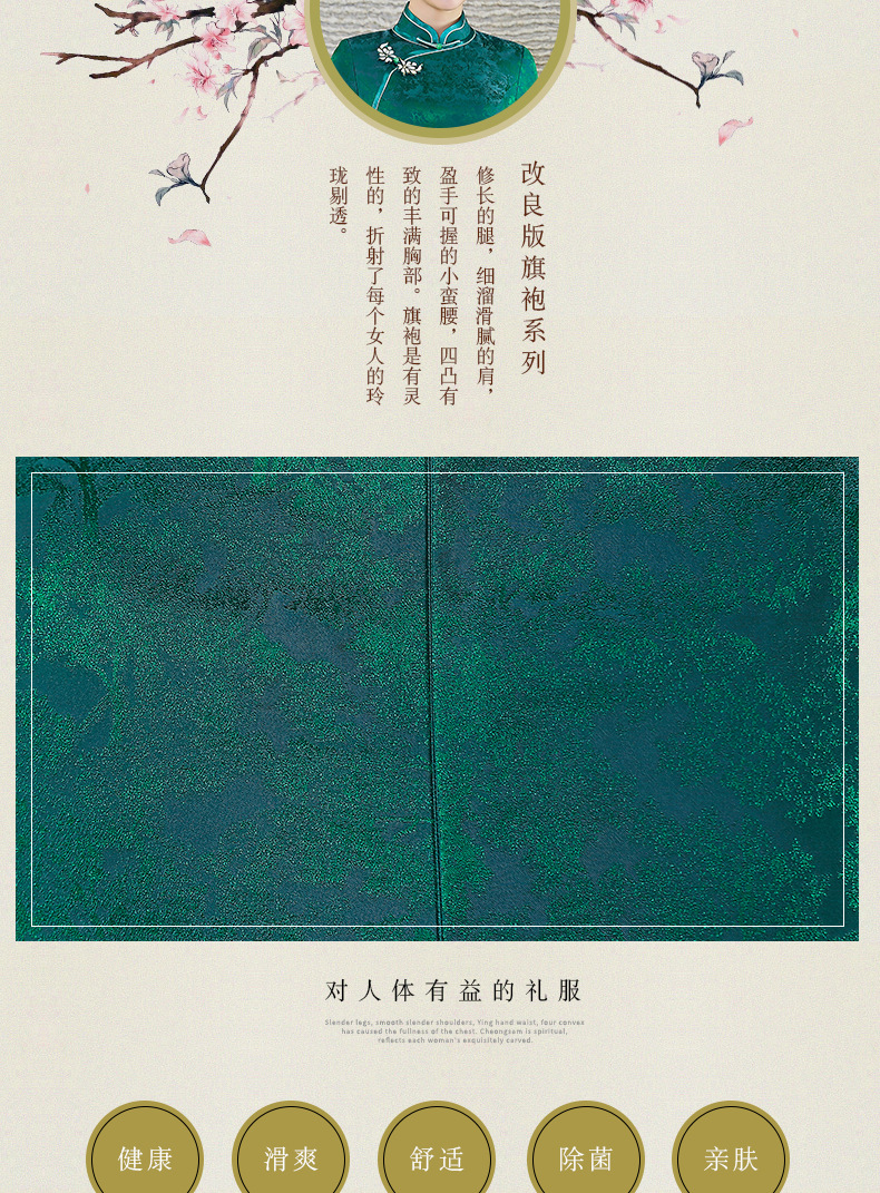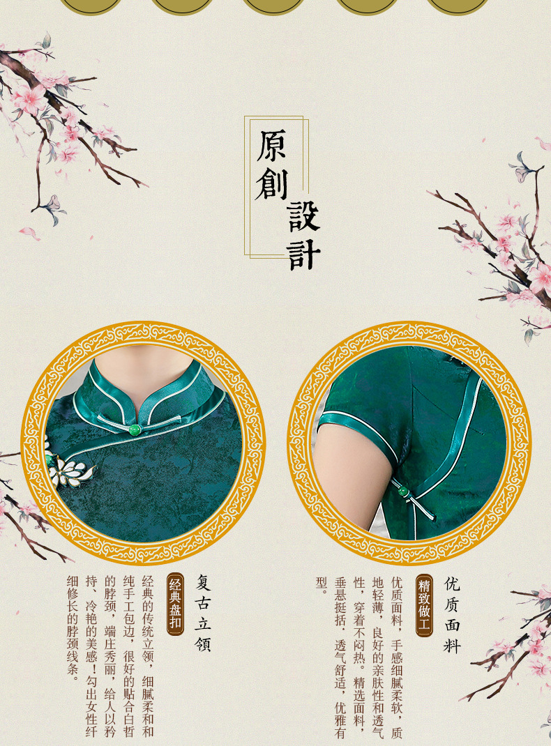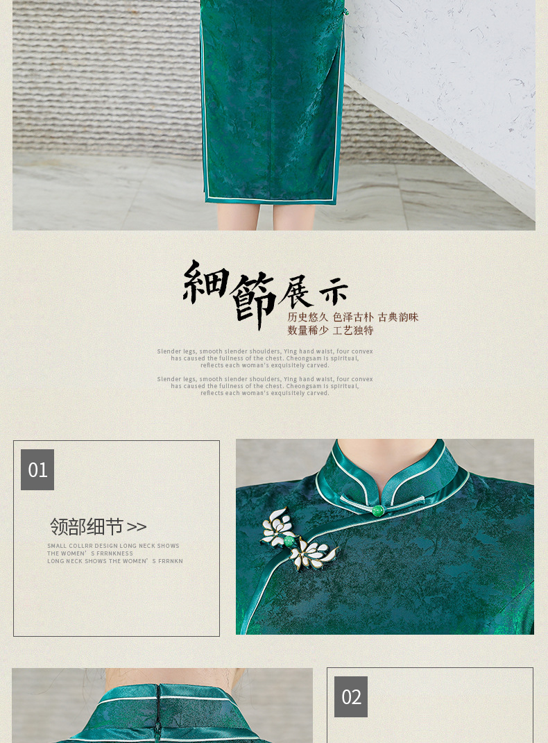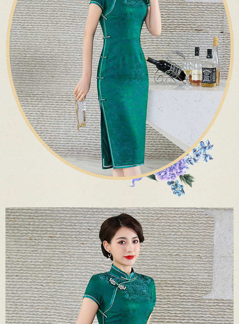 TZRY-21021新款手工盘口真丝提花复古旗袍 宴会礼服日常真丝提花侧排扣