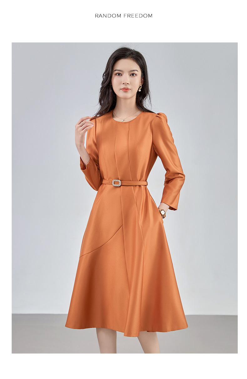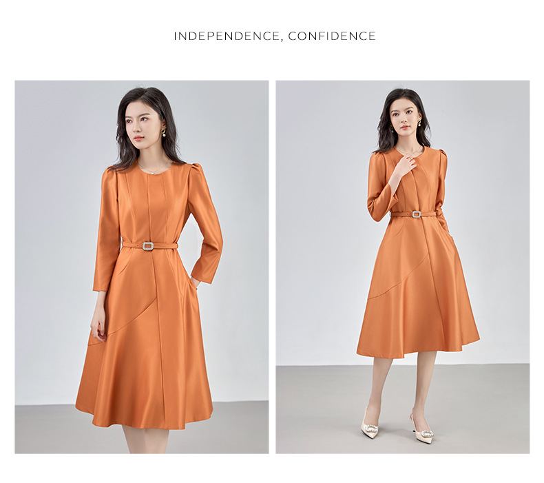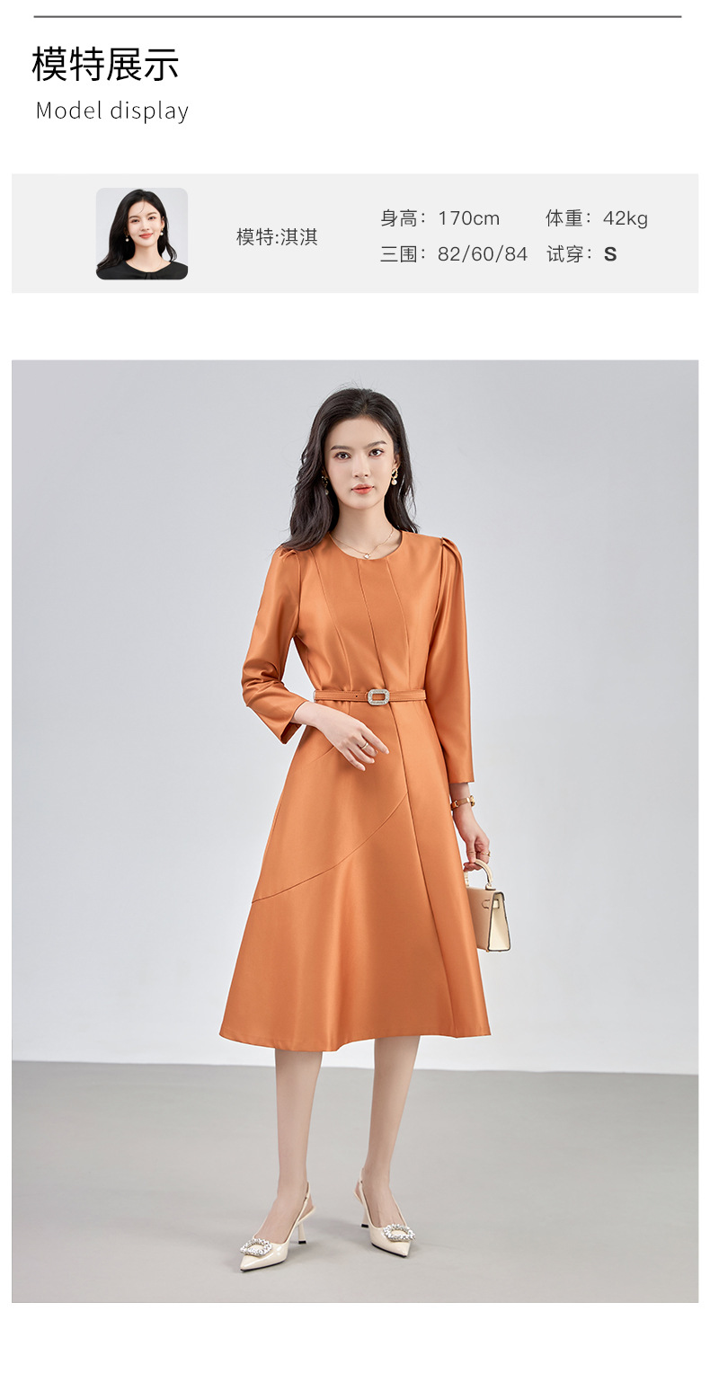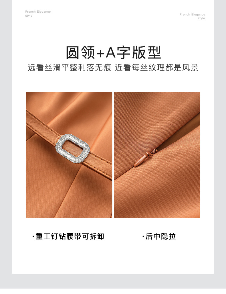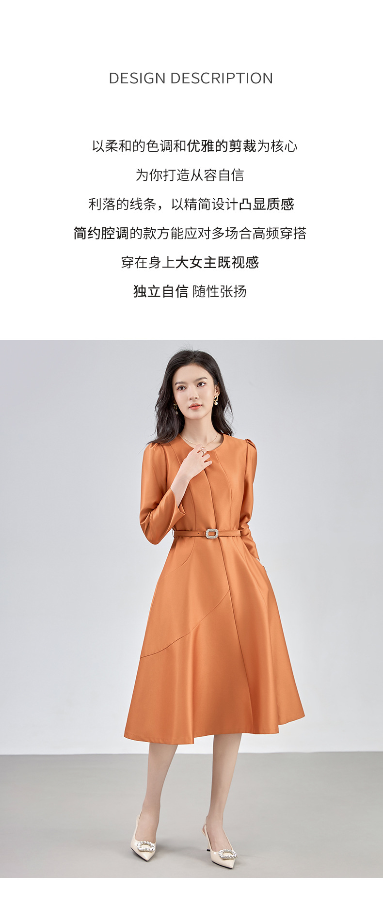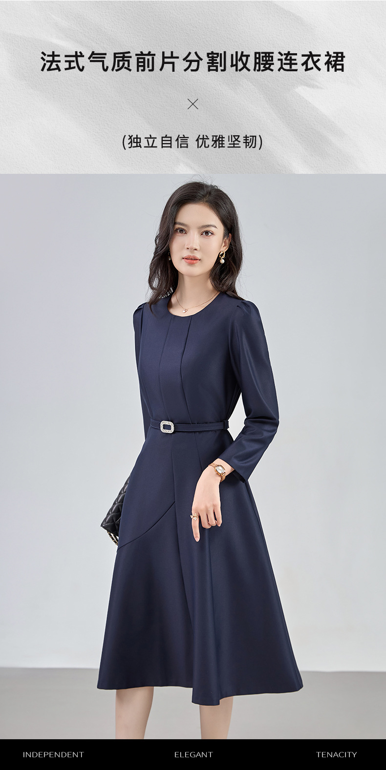 【高货wl】全新升级【铂金会员321/天猫429/差价108】(35024) 洛诗琳秋季新款收腰显瘦法式气质连衣裙时尚简约腰带A字裙
