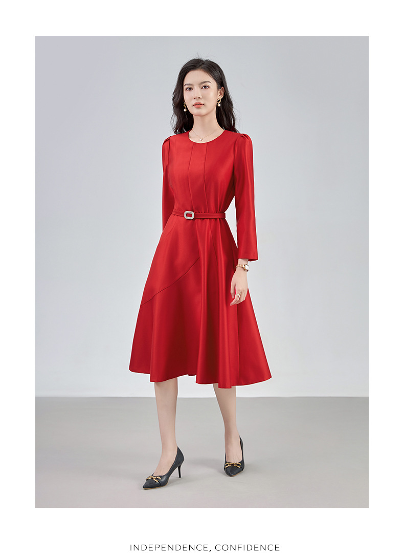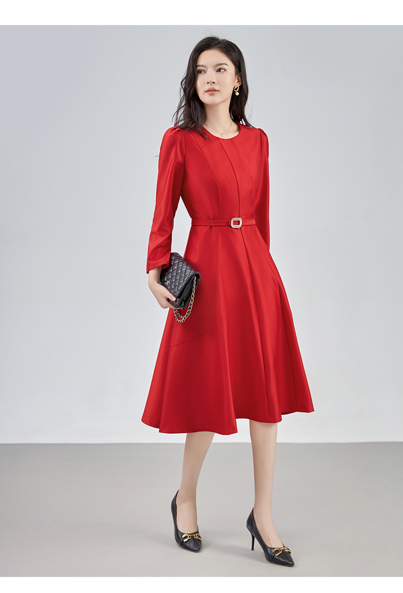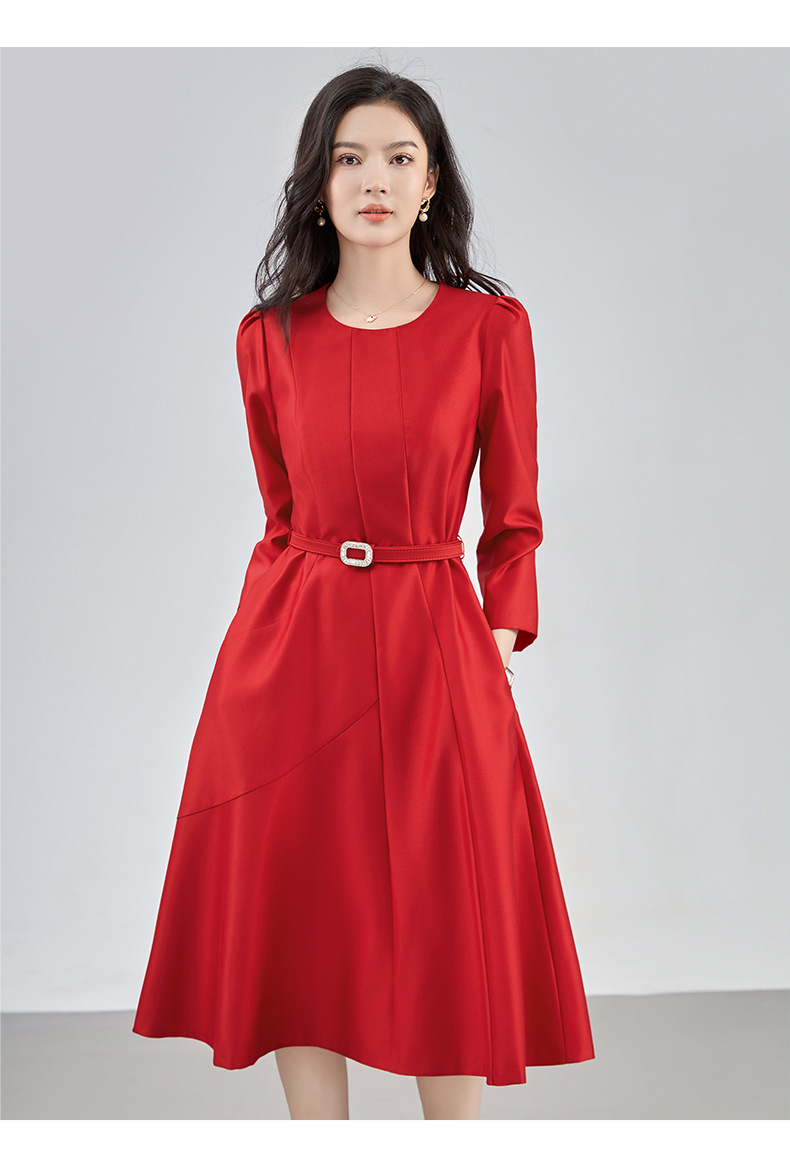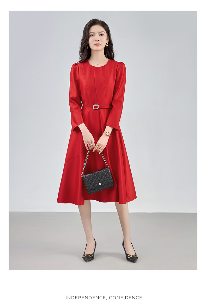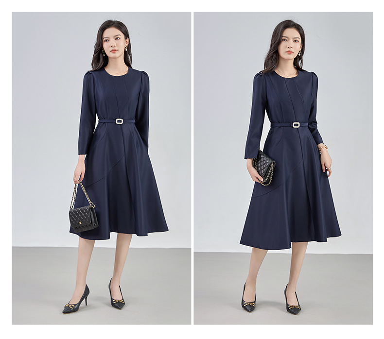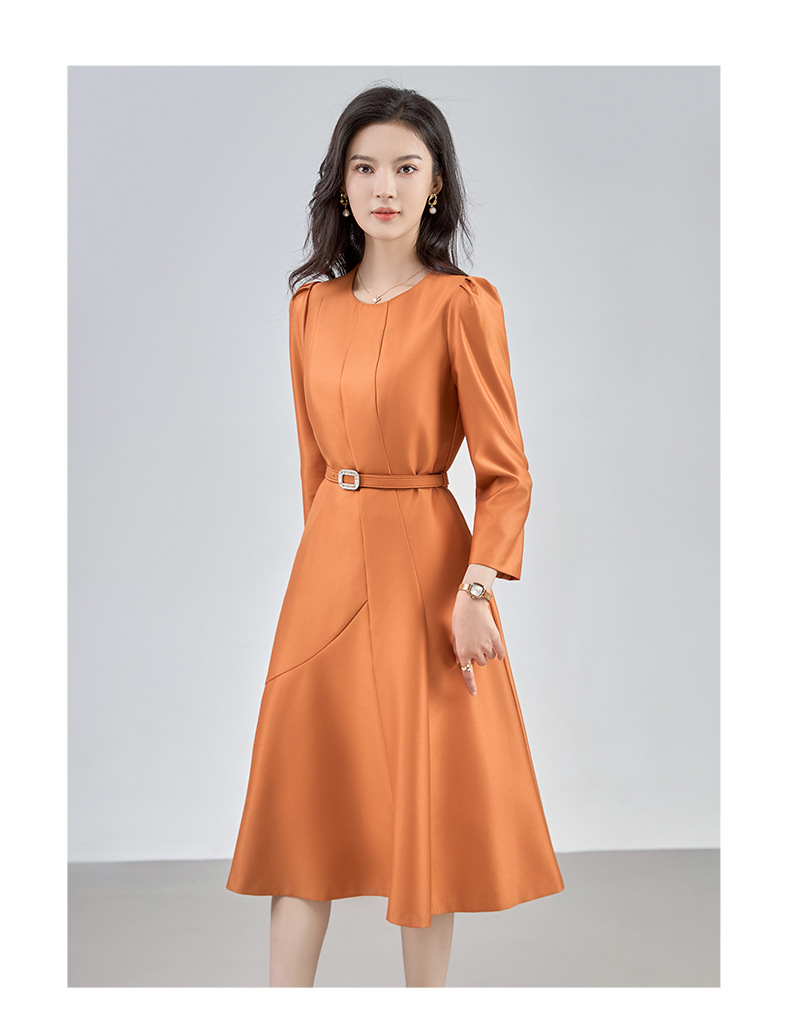 【高货wl】全新升级【铂金会员321/天猫429/差价108】(35024) 洛诗琳秋季新款收腰显瘦法式气质连衣裙时尚简约腰带A字裙