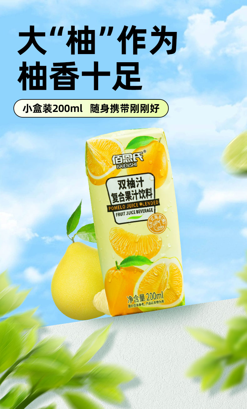佰恩氏·双柚汁|一口喝到两种柚子!胡柚微苦 + 蜜柚爆甜 ,冰镇清爽,火气秒投降