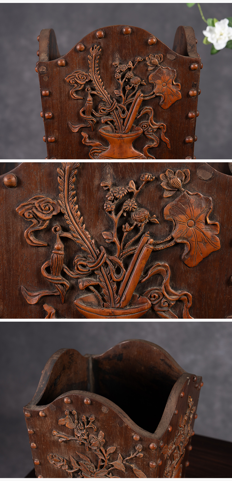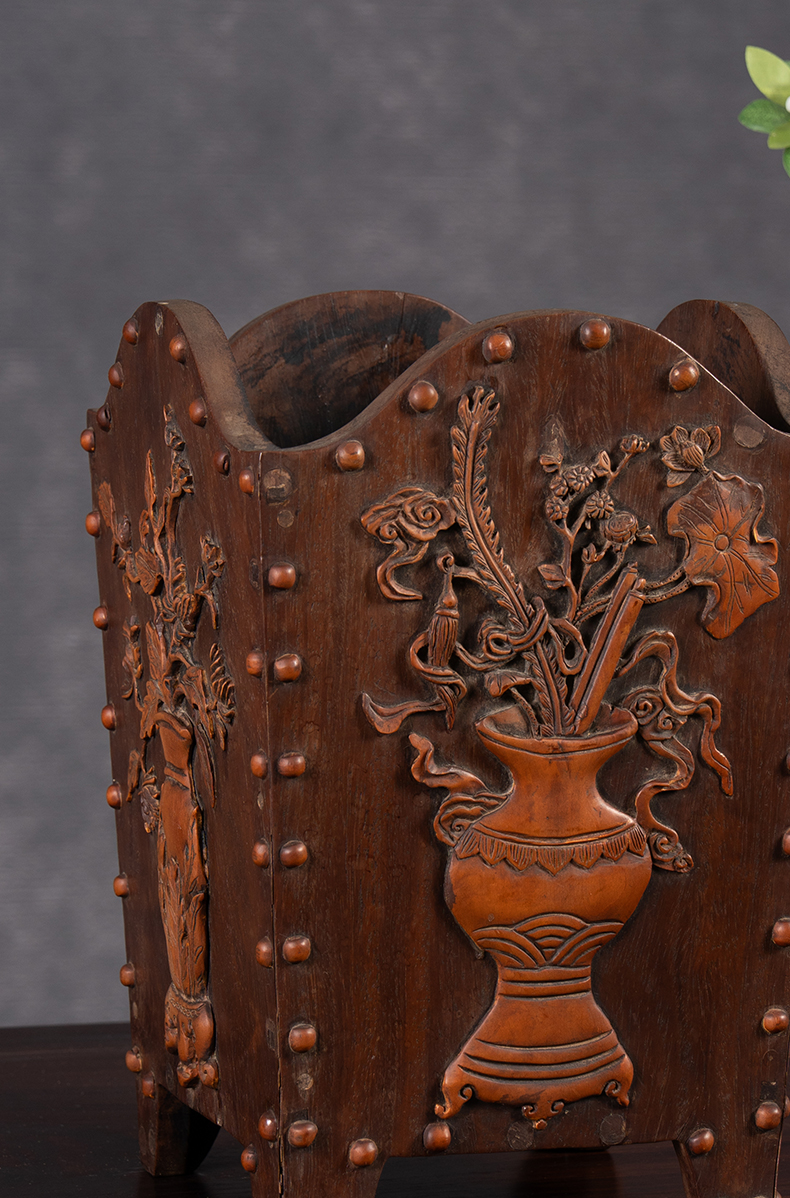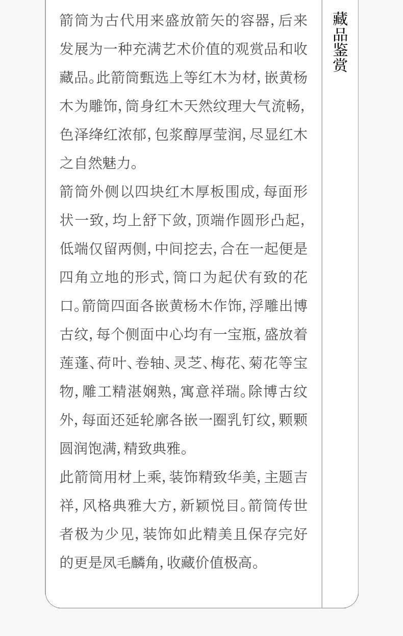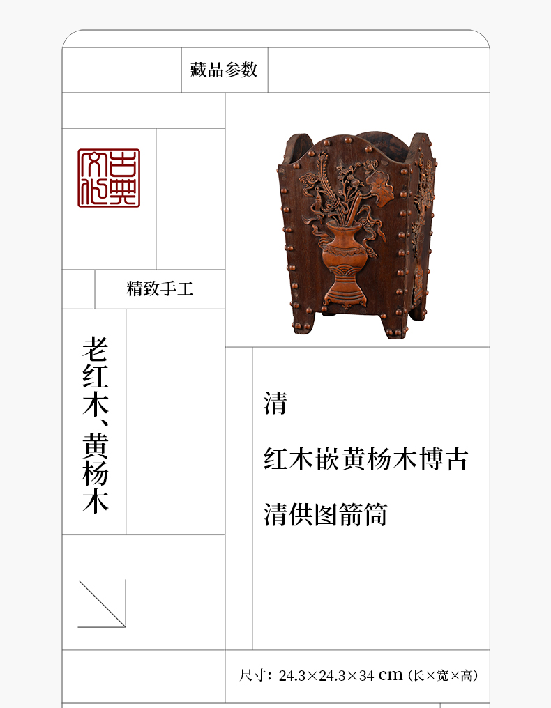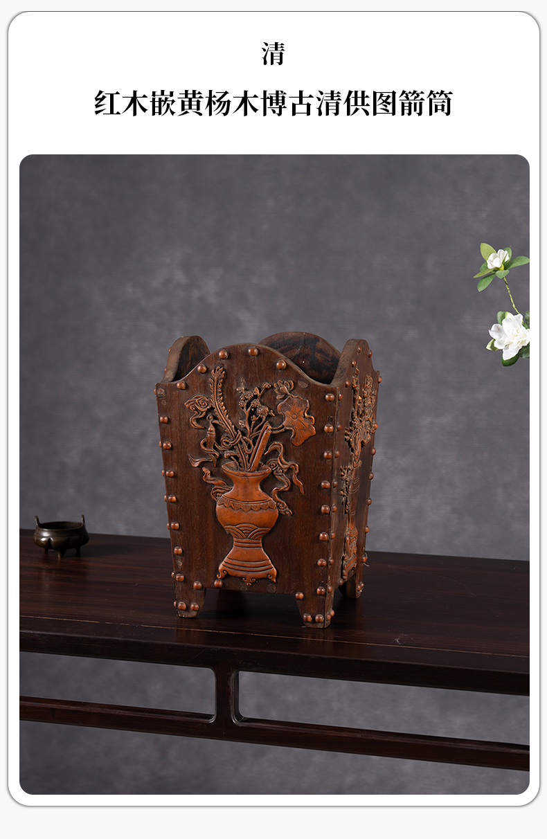清 红木嵌黄杨木博古清供图箭筒