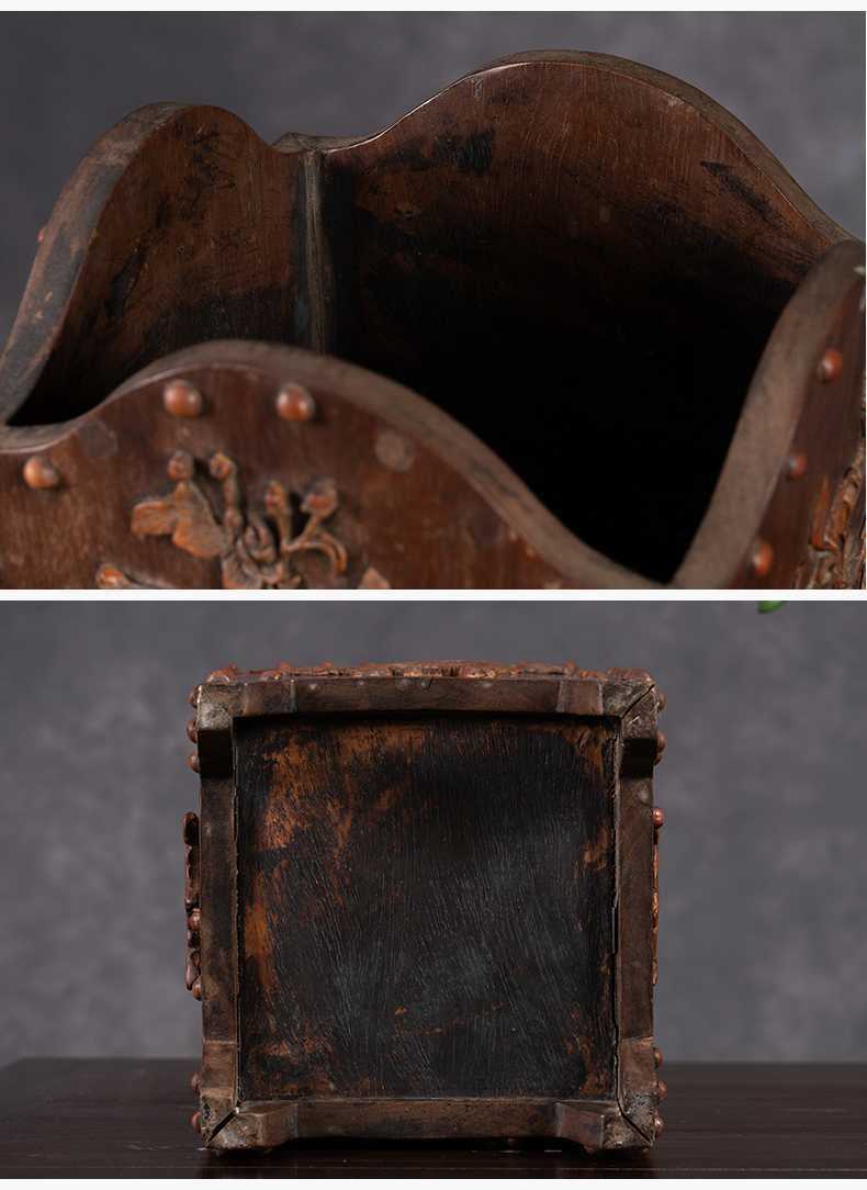 二十世纪 黄花梨镶云石方形笔筒