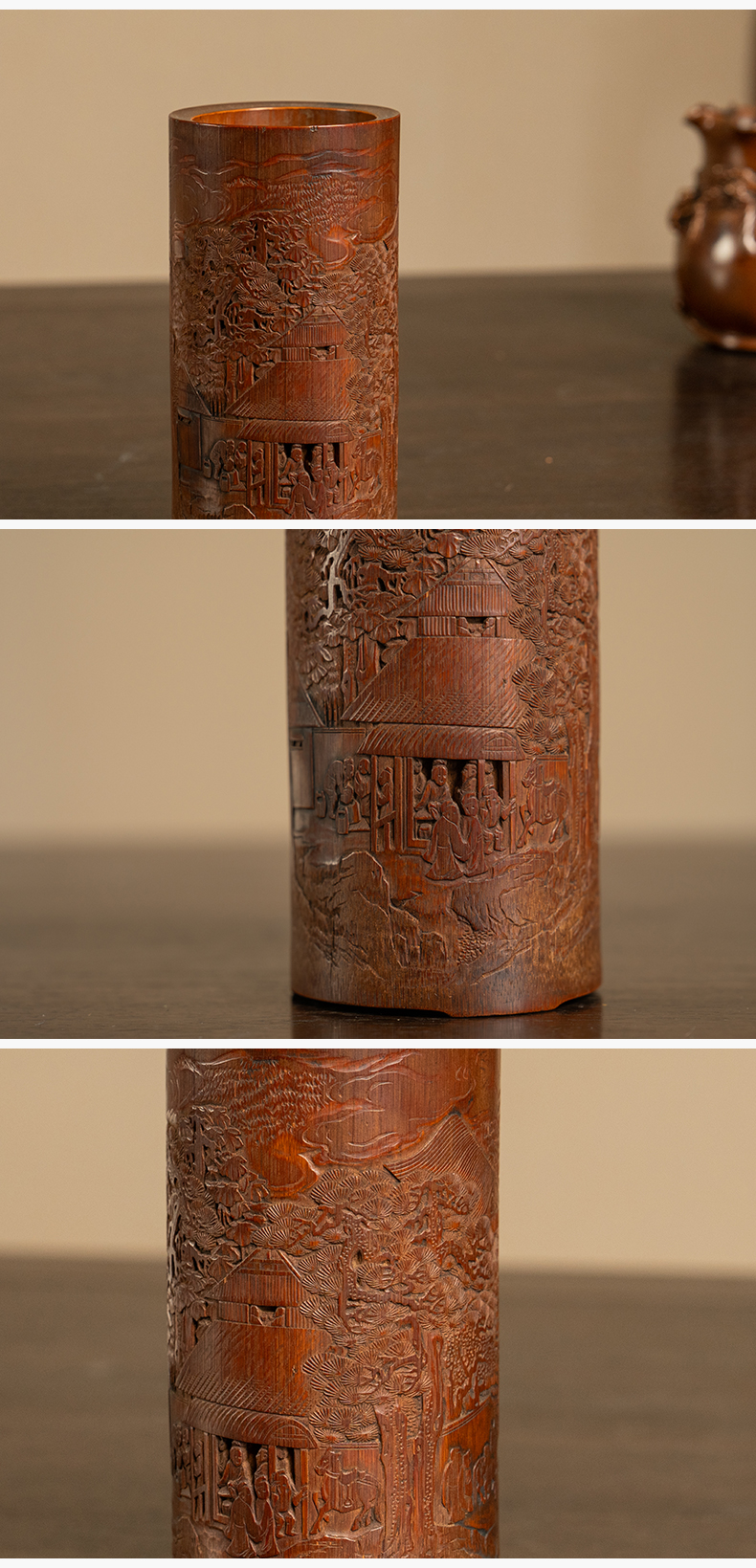清 黄花梨镶竹丝编四抹门亮格柜摆件
