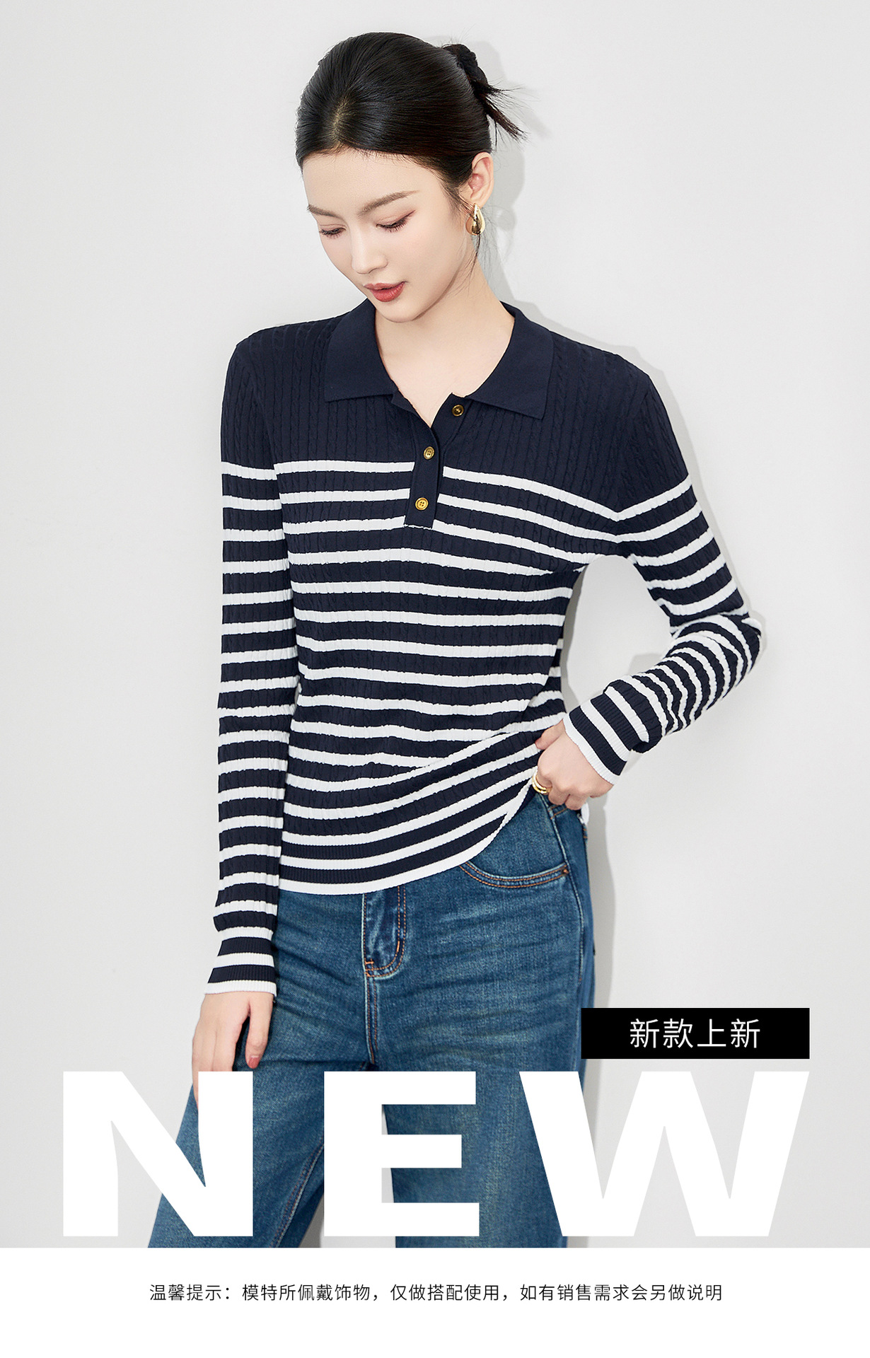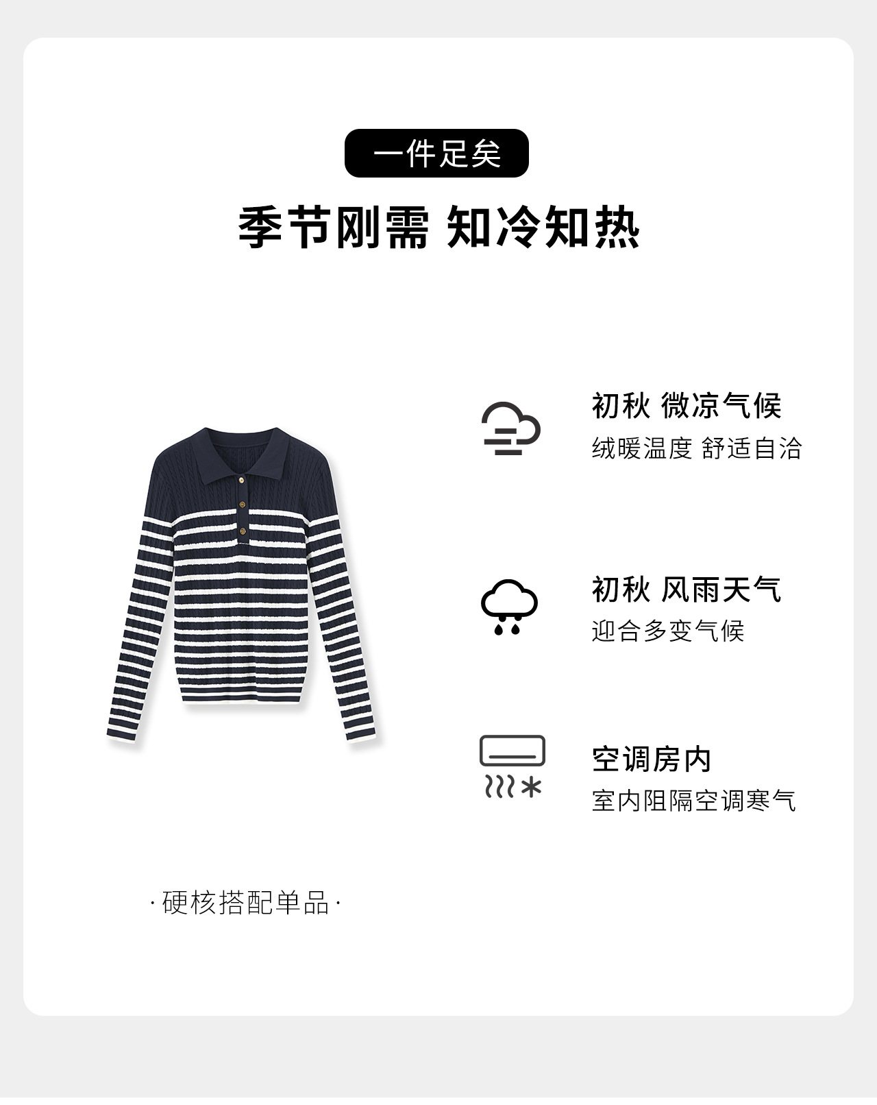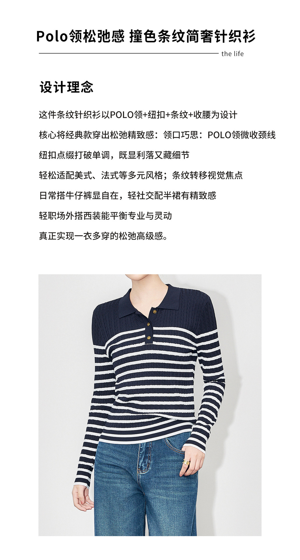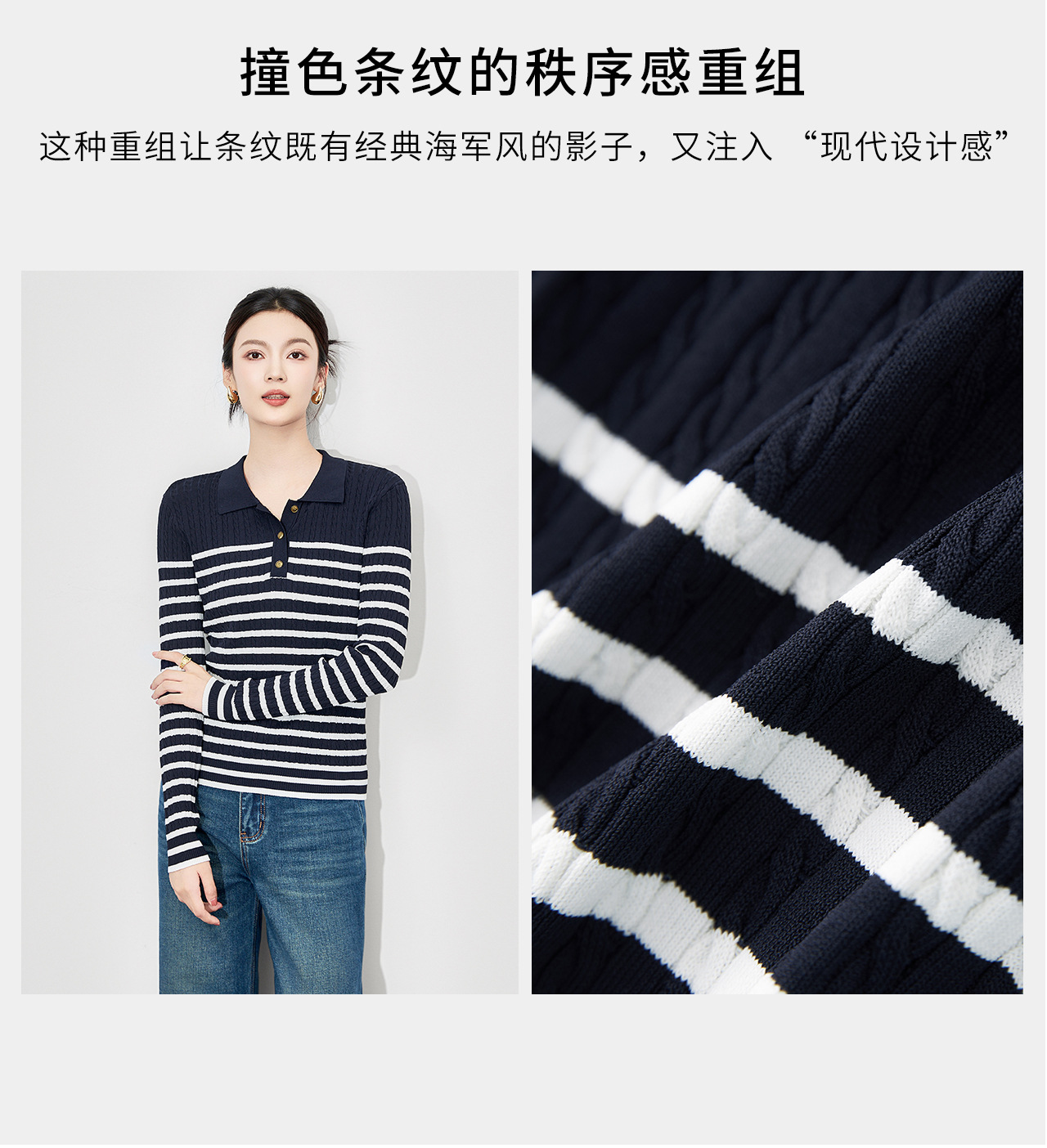 「高货wl」全新升级【铂金会员211/天猫279/差价68】(14211)洛诗琳复古立体绞花针织衫2025秋季通勤撞色条纹翻领上衣