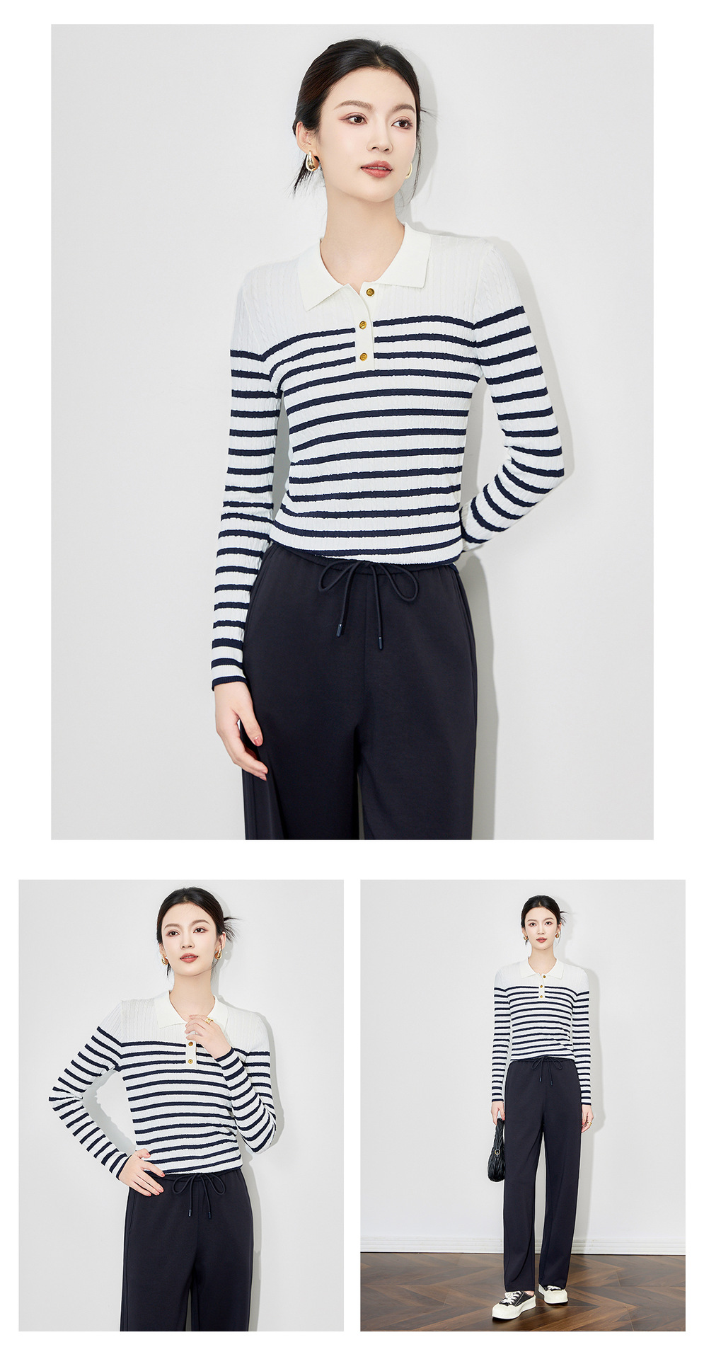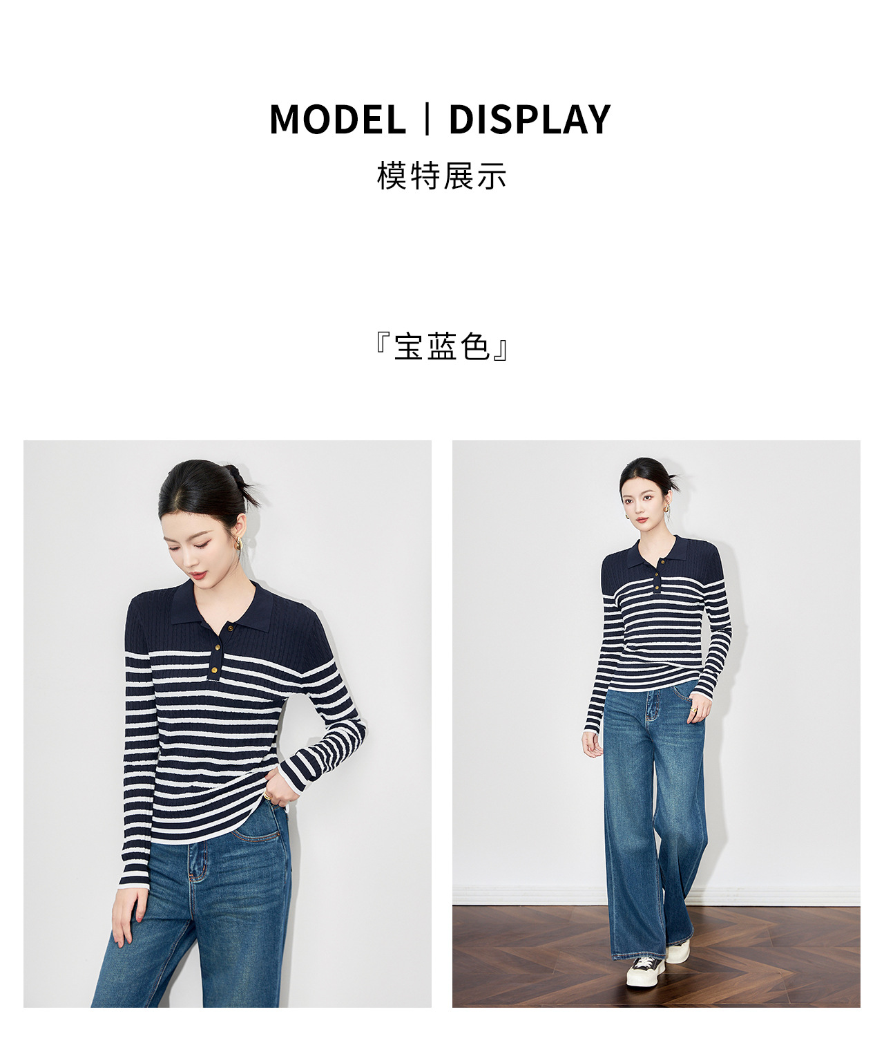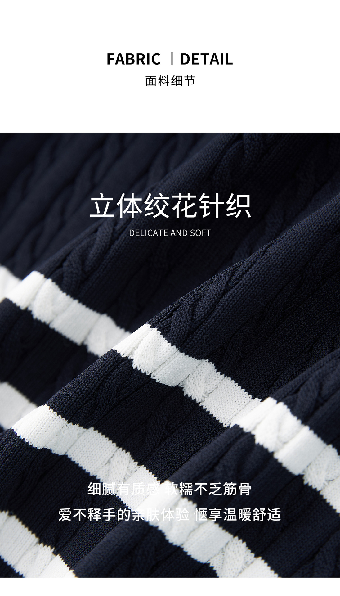 「高货wl」全新升级【铂金会员211/天猫279/差价68】(14211)洛诗琳复古立体绞花针织衫2025秋季通勤撞色条纹翻领上衣