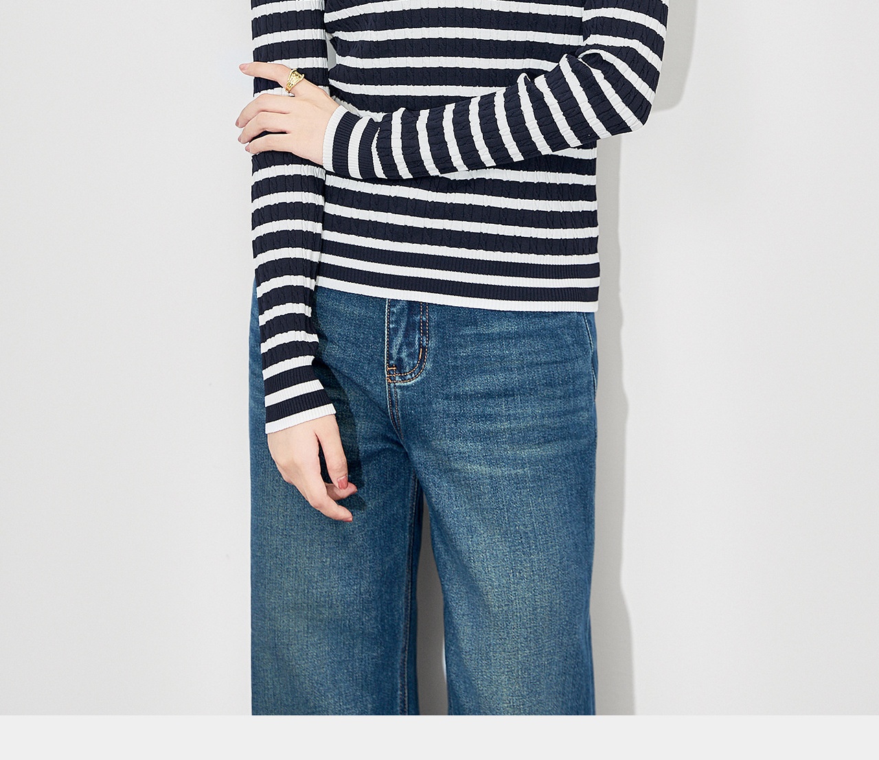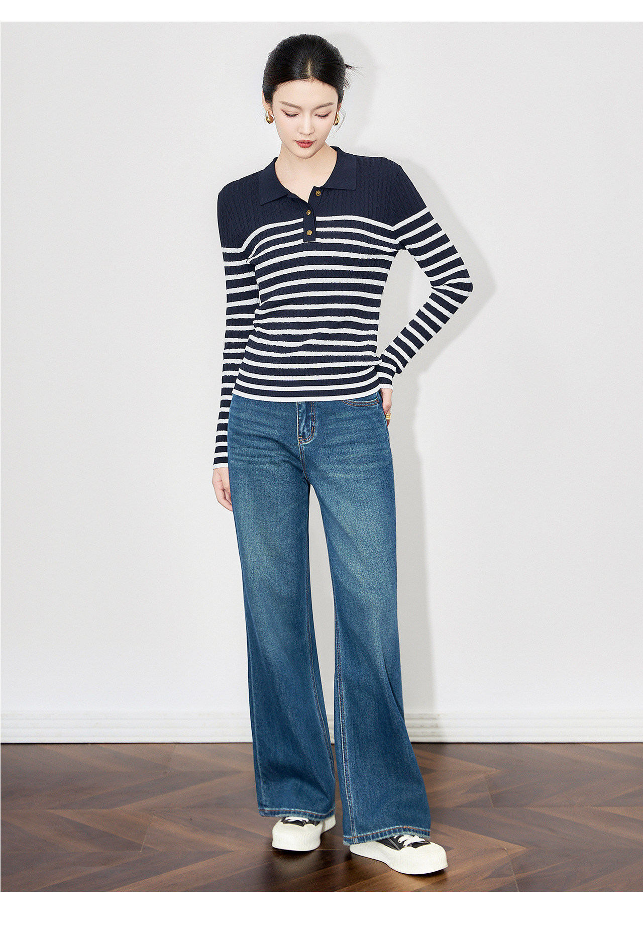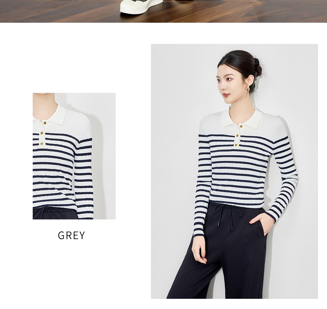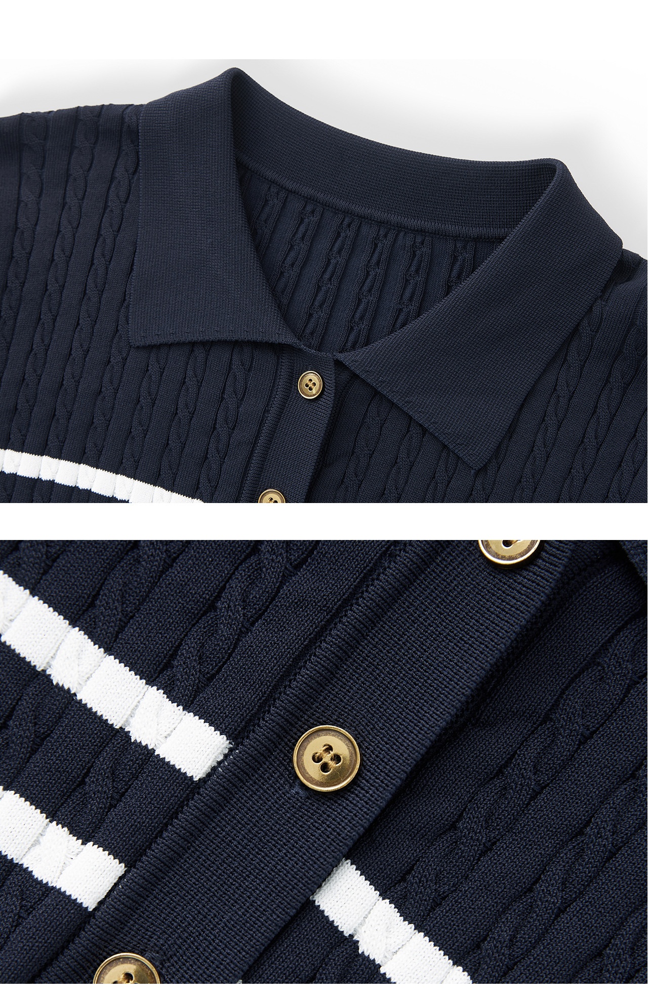 「高货wl」全新升级【铂金会员211/天猫279/差价68】(14211)洛诗琳复古立体绞花针织衫2025秋季通勤撞色条纹翻领上衣