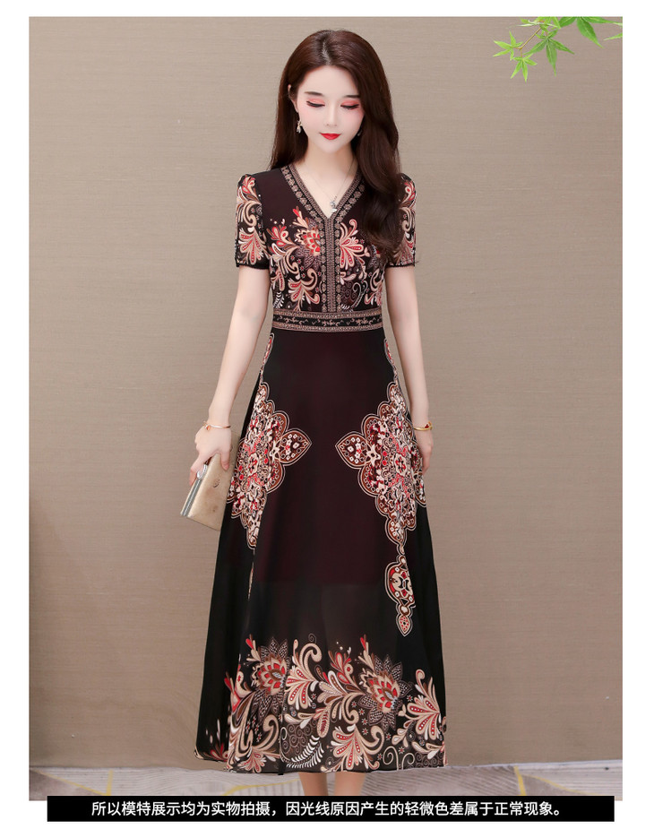 【亏本清仓】TJ-连衣裙女2021年夏季新款贵夫人收腰减龄复古长裙子