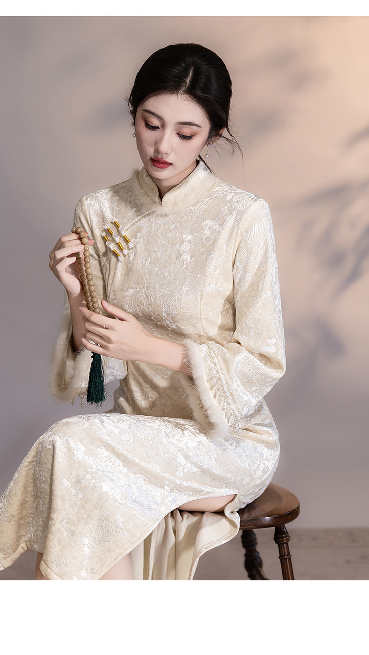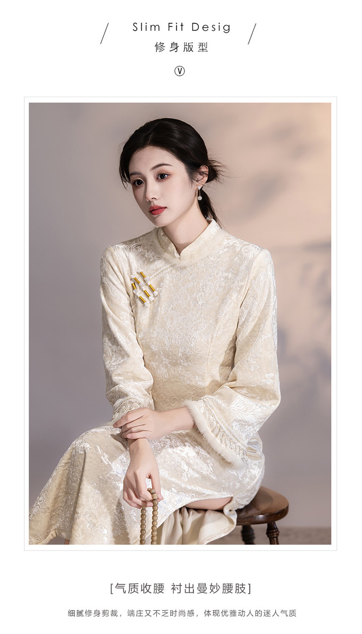 2025新款高端旗袍加绒加厚米白色LSB4162 商品图3