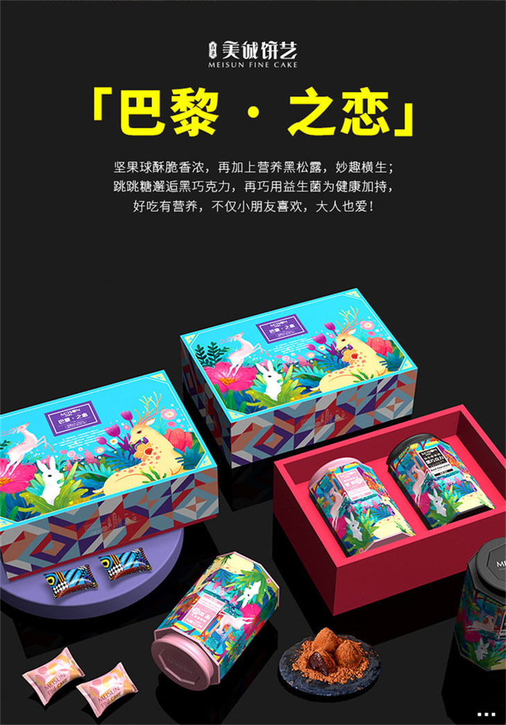香港美诚巴黎之恋年货礼盒 黑松露芝士坚果球益生菌爆跳黑巧克力417g装