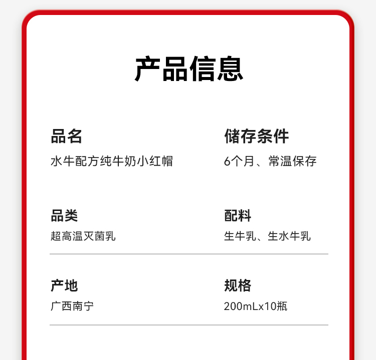 隔壁刘奶奶水牛配方小红帽200ml*10盒/箱
