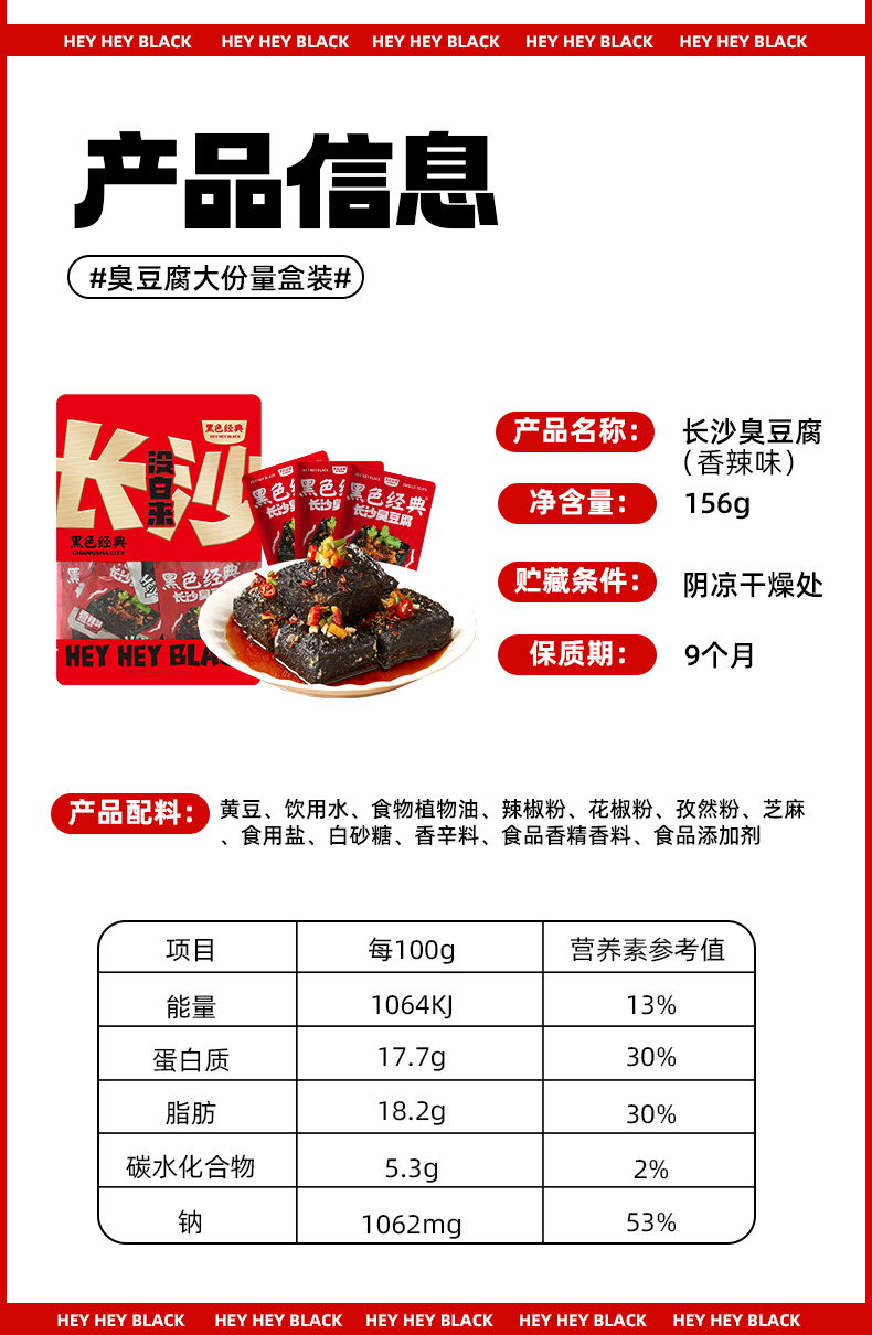 【会员日秒杀】黑色经典长沙香辣臭豆腐156g/袋 大份量实惠装