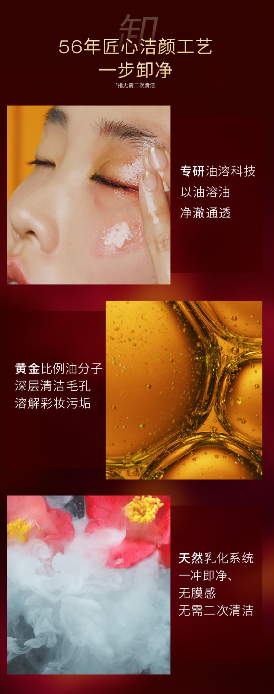 它已经有55年的匠心洁颜工艺,流动性强,乳化速度也超快哦,一点都不油腻,深层清洁的同时还减少对肌肤的牵❗❗从而减少肌肤松弛!不愧是传说中的“卸妆油之父”~