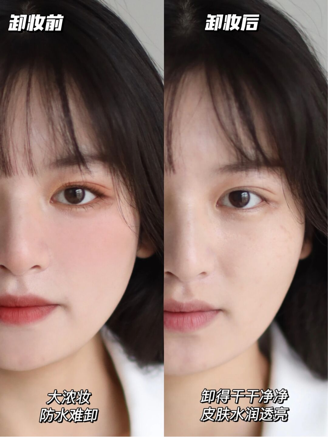 💧等到全部泛白就是乳化彻底了,记得在鼻子和下巴处多按摩,黑头白头也会跑出来!而且难卸的眼妆唇妆也能卸干净,真的很适合懒人啦,丝毫不会糊眼睛,真的qiao温和,真的是敏感肌一辈子的好朋友~ .