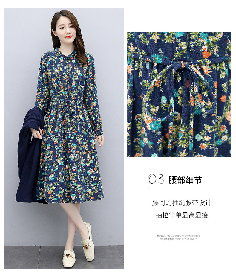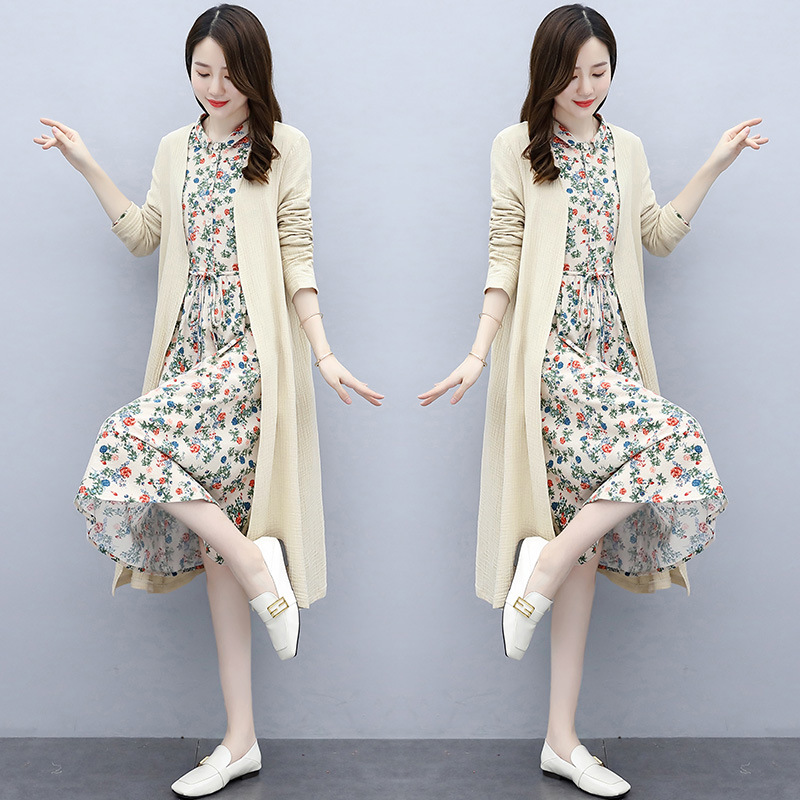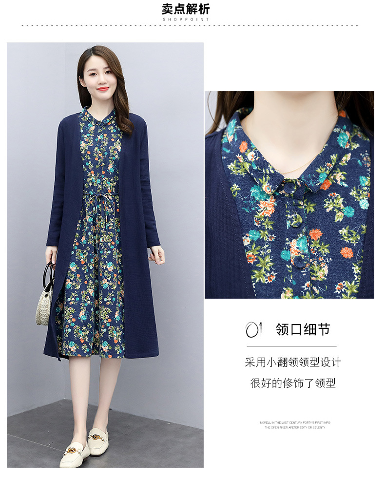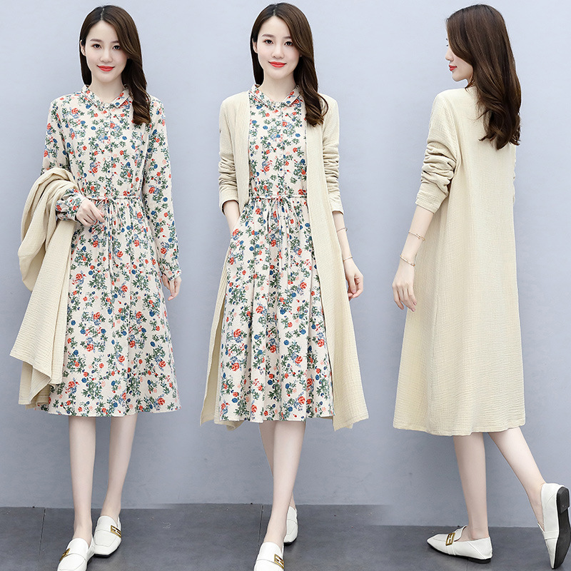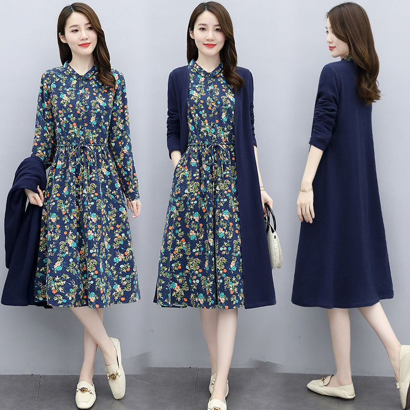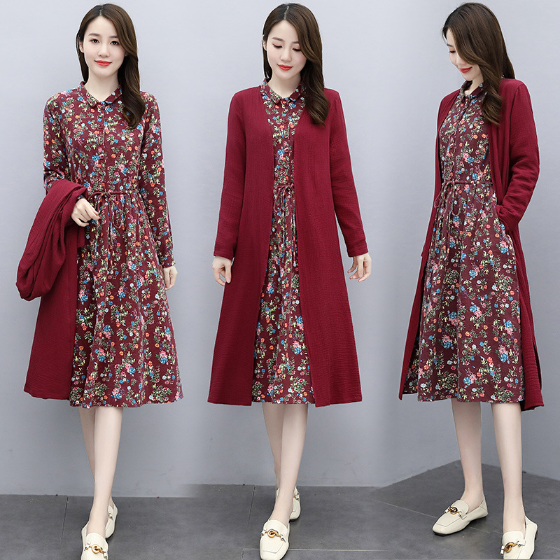 MQQ-6626碎花棉麻连衣裙女秋装2020新款薄款收腰显瘦休闲长裙两件套