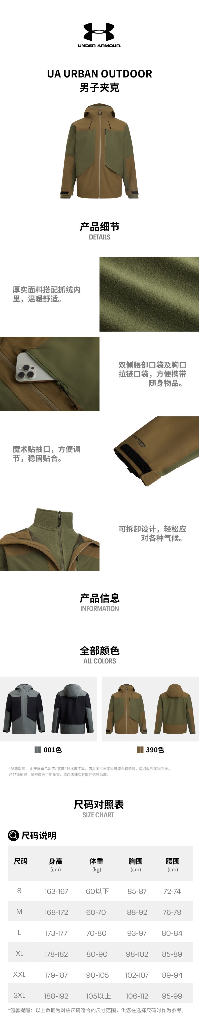 UnderArmour安德玛 男三合一夹克 1389299-002