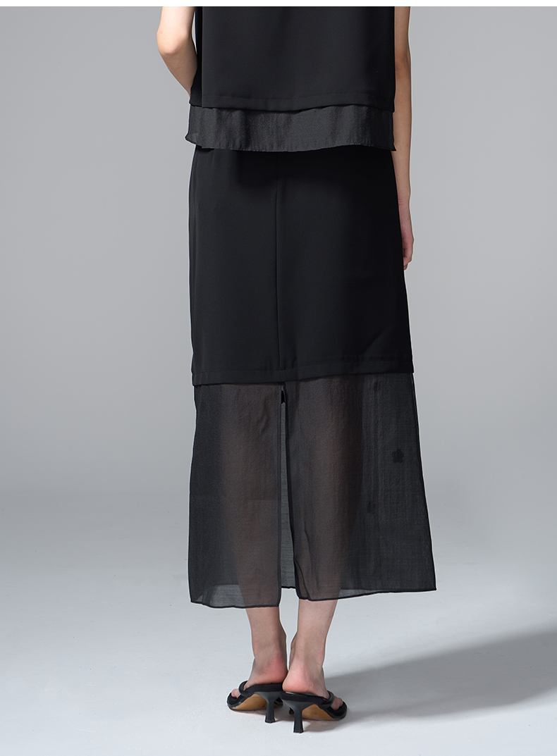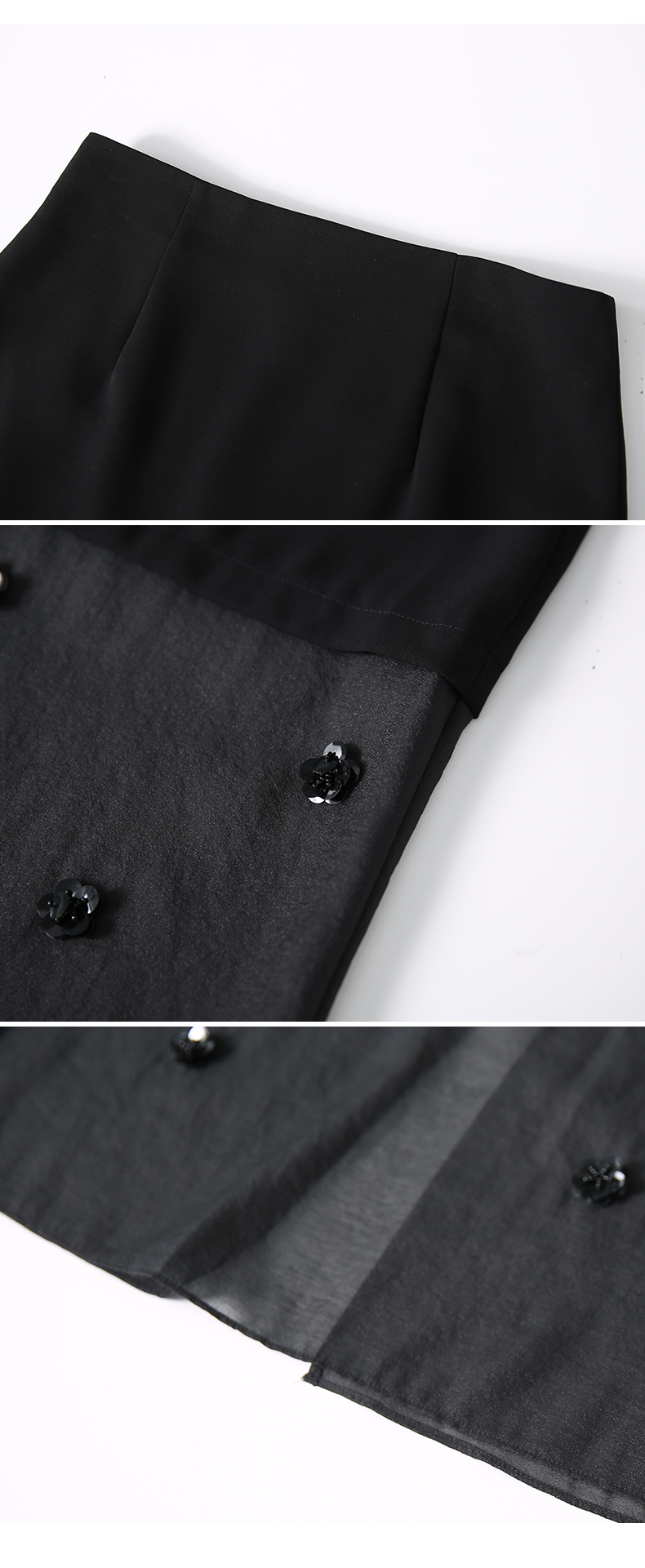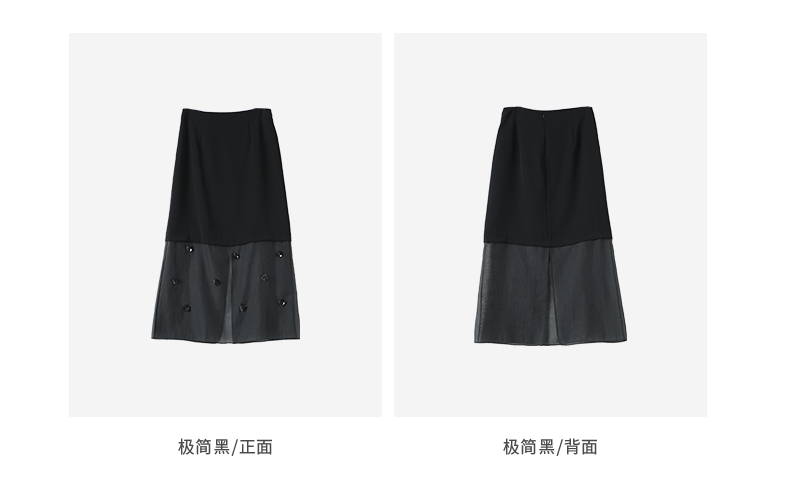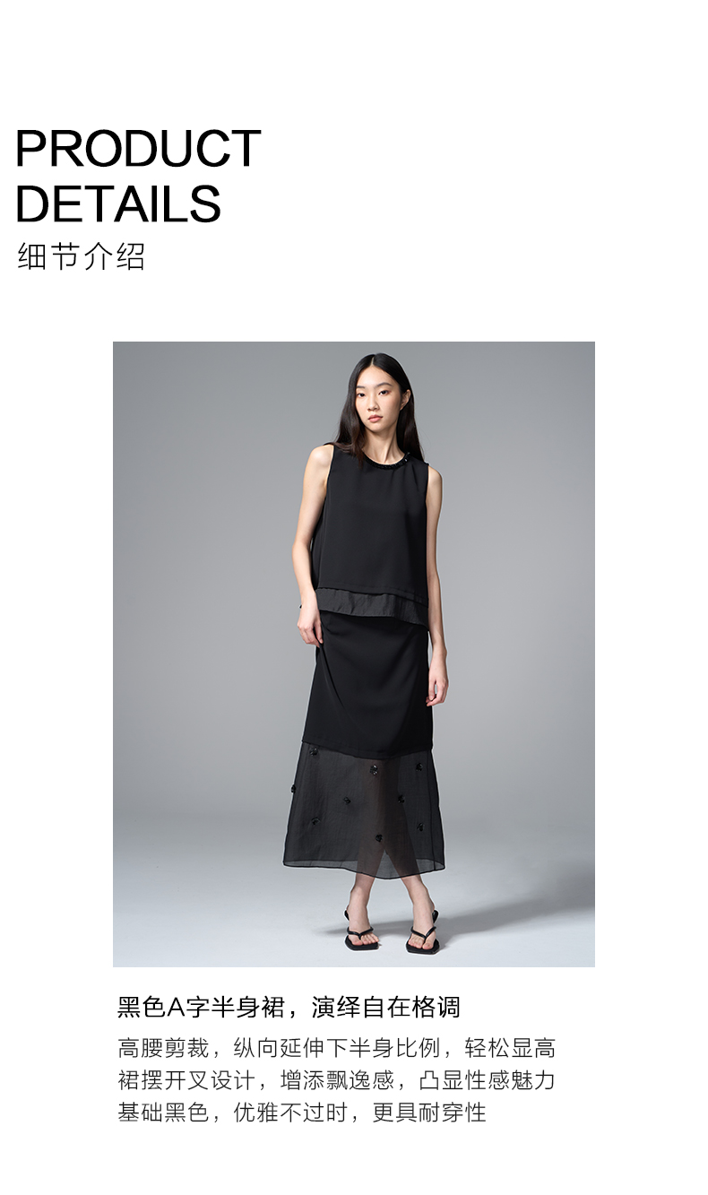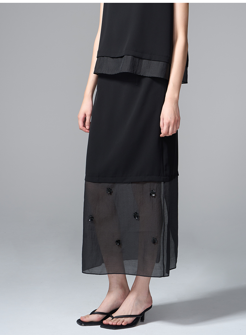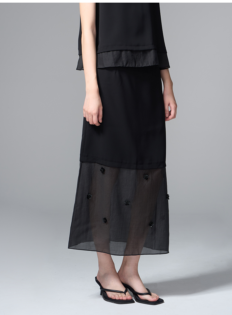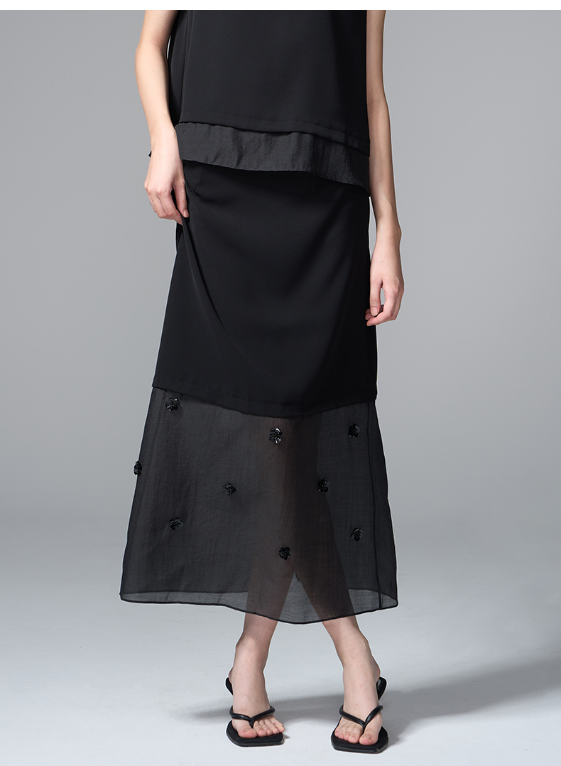 VIMAGE纬漫纪拼接网纱珠片花朵优雅A字显瘦半身裙2025季夏新款V2306934