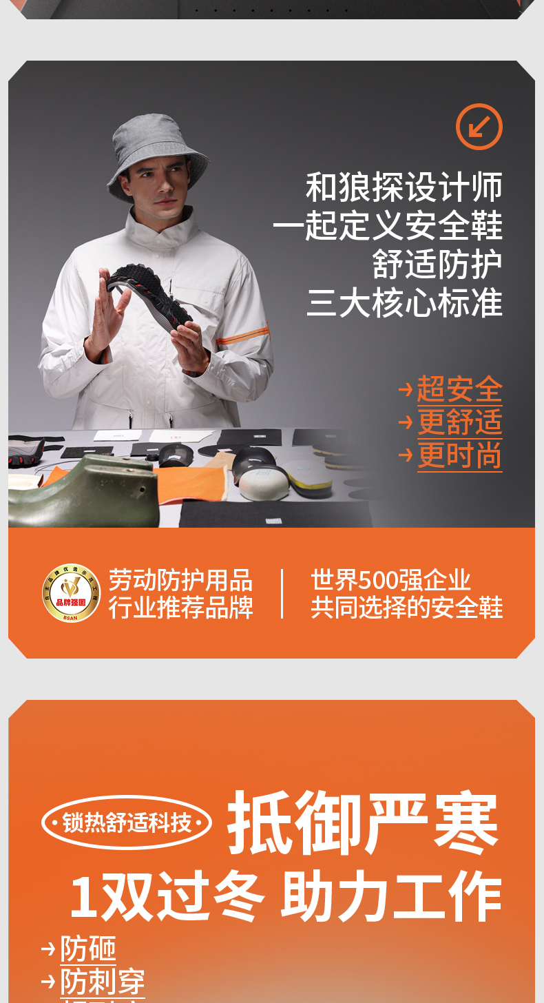 狼探劳保鞋男四季款4.0㎜凯夫拉底 防静电防砸防刺高端科技安全鞋