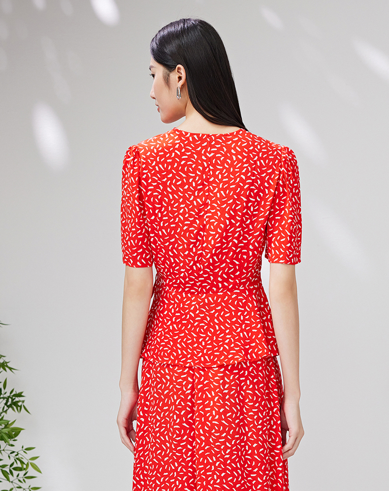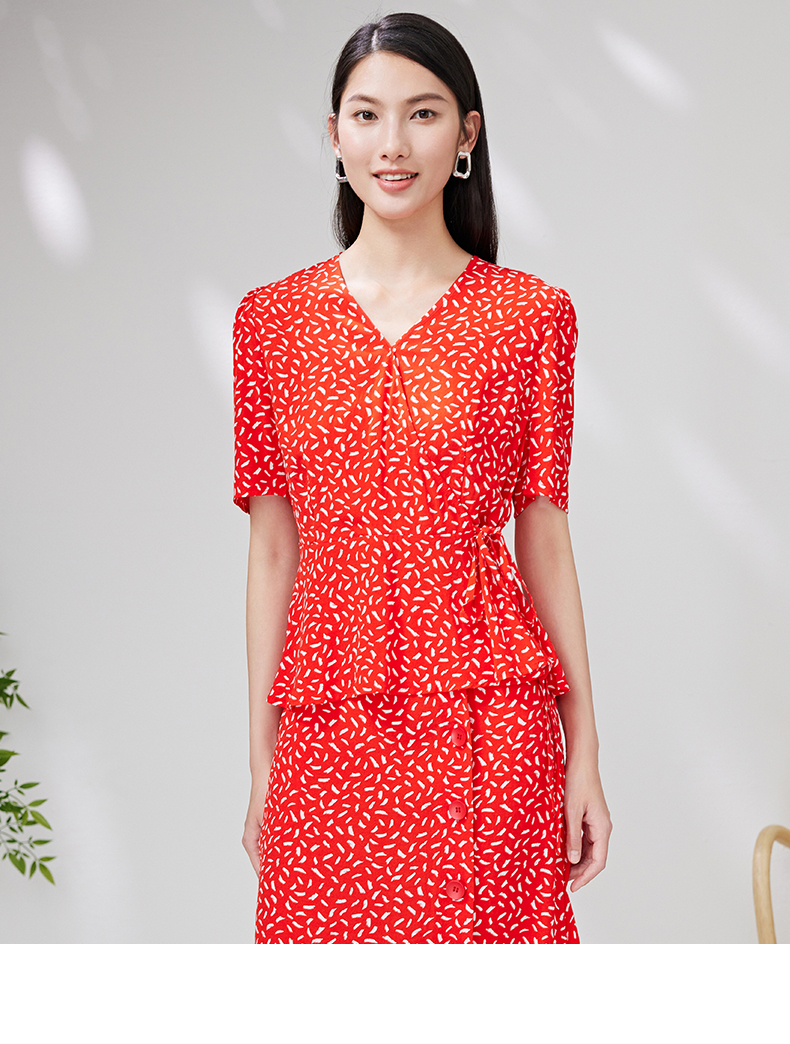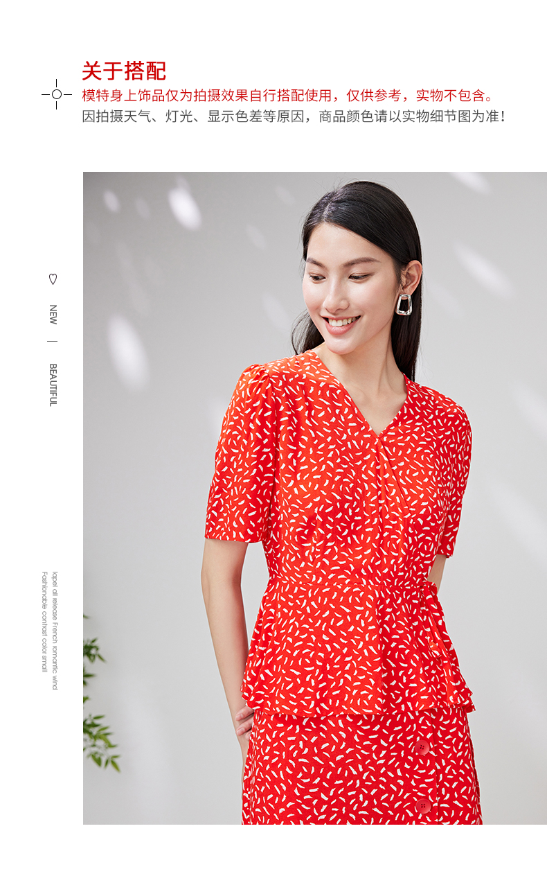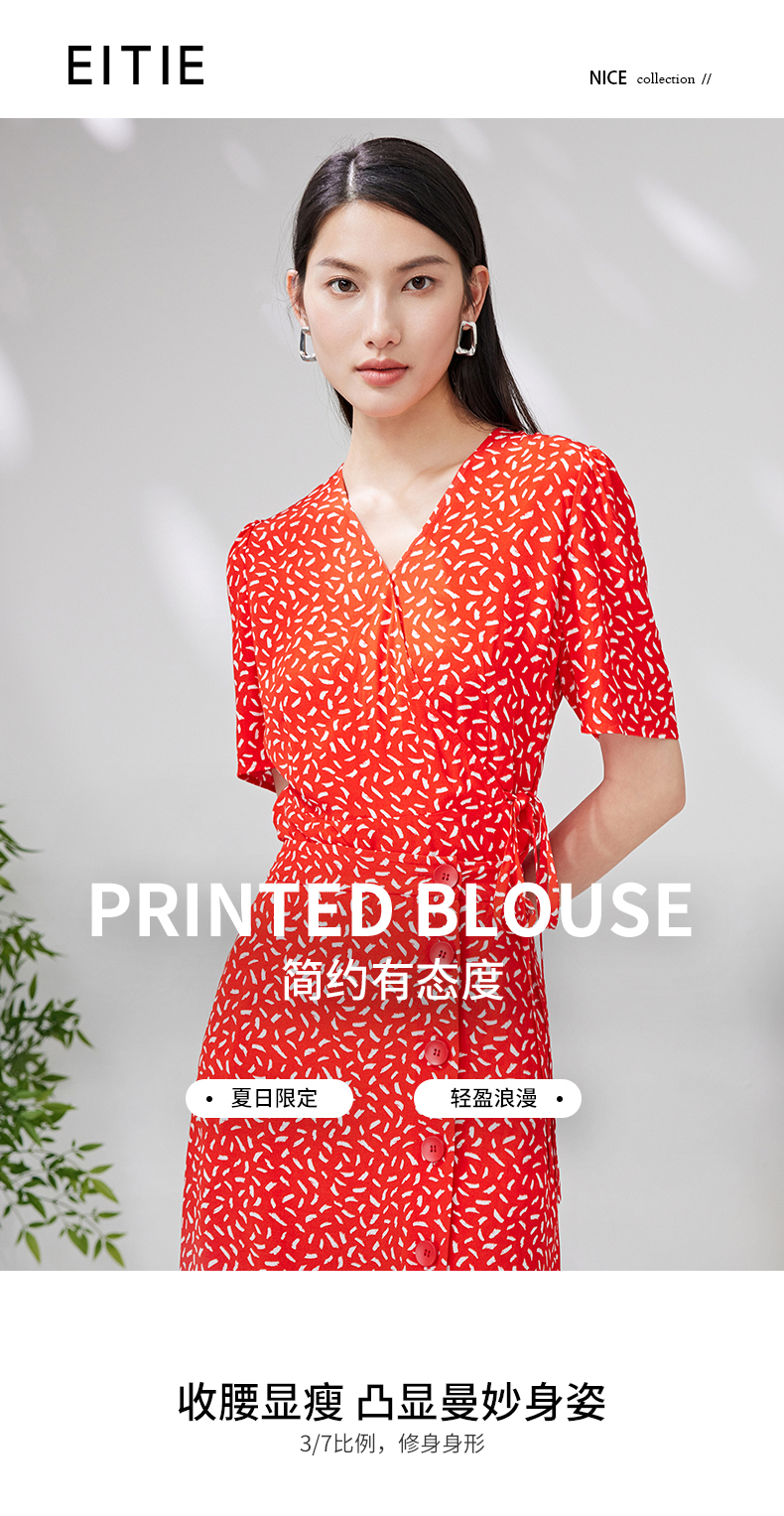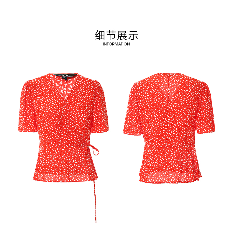 EITIE爱特爱夏季新款系带修身显瘦百搭印花收腰小上衣7013711