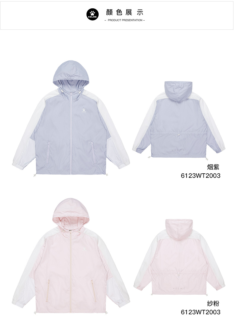 卡尔美 春夏休闲轻薄防晒风衣女运动户外皮肤衣外套潮