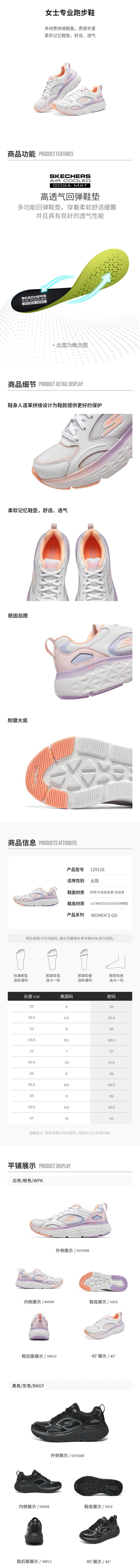 Skechers斯凯奇 女强缓震型跑步鞋 129128-WPK