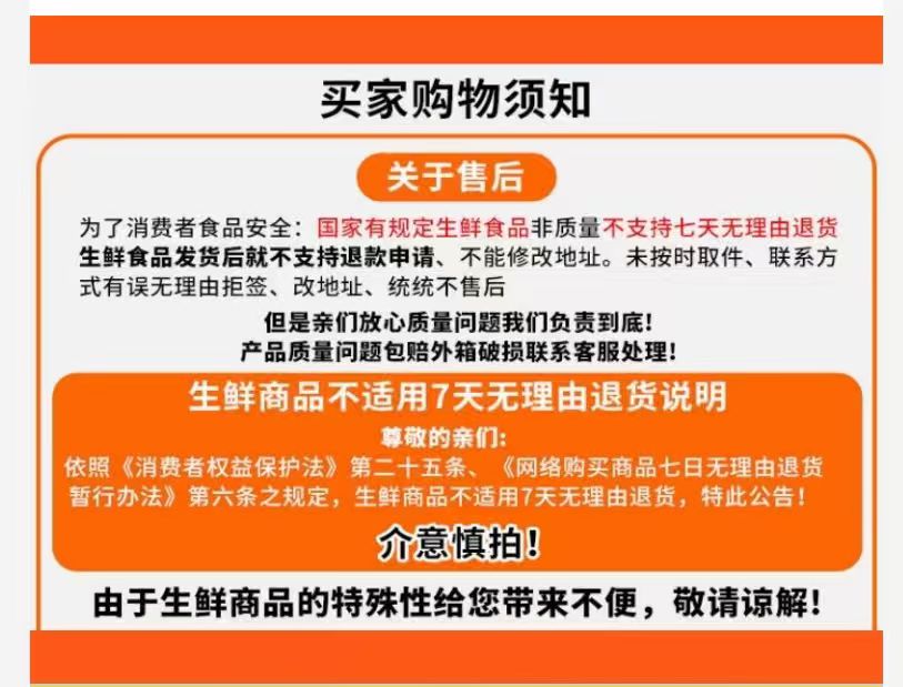4、下单前请仔细核对下单地址,如因电话、地址等错误,产生的售后客户自己承担