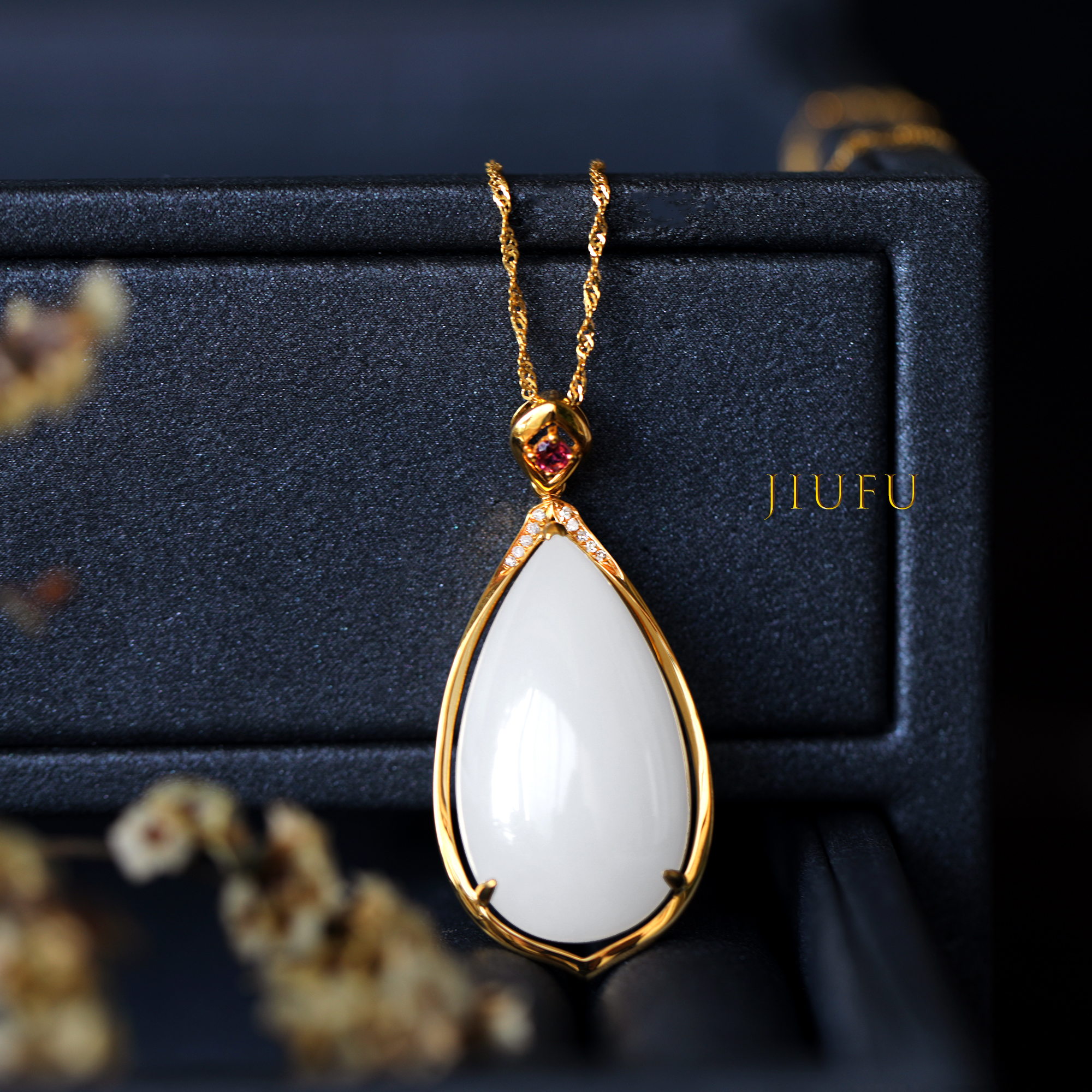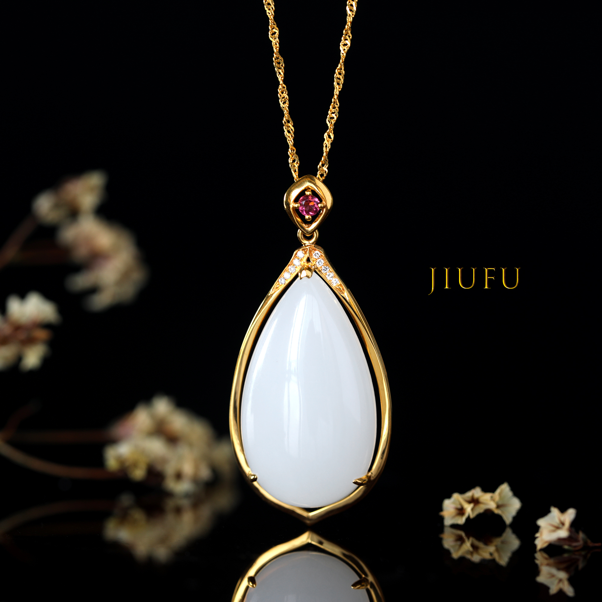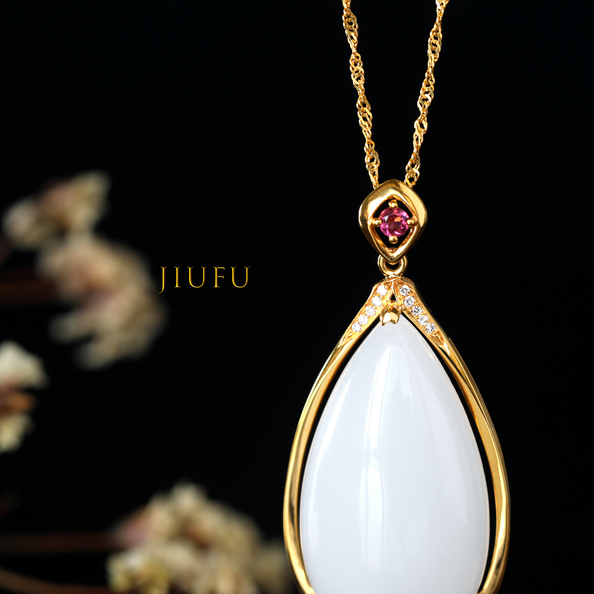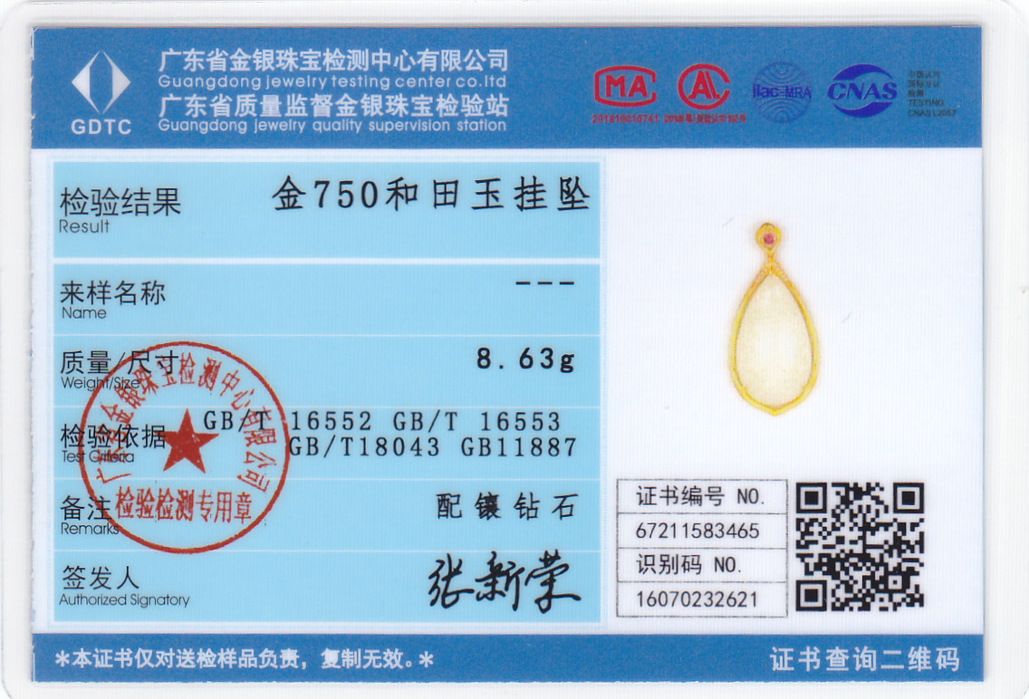 18K黄金和田玉(白玉)吊坠