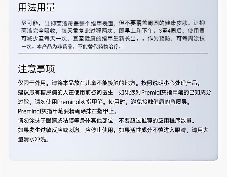 【品名】荷兰原装进口preminal灰甲笔 滋养甲床 3ml*1支 【规格】3ml*1支 【产地】荷兰 【保质期】3年 【发货包装】独立包装 【发货地】江西 【发货快递】邮政、圆通、中通随机发 【补邮费地区】新疆、西藏、青海+13元 【发货时效】48-72小时,周末节假日顺延 【使用说明】preminal指甲笔是开盖直接使用的,不是挤或者拧的,涂抹的时候不会有大量液体渗出来,它的笔芯类似马克笔,看不到里面的液体,同时里面的液体也是倒不出来的,使用的时候是用多少出多少,而且是速干的,不会出现漏夜浪费的情况。同时不要随意拔出笔芯,否则会造成笔芯迅速干燥不能涂抹使用! |
