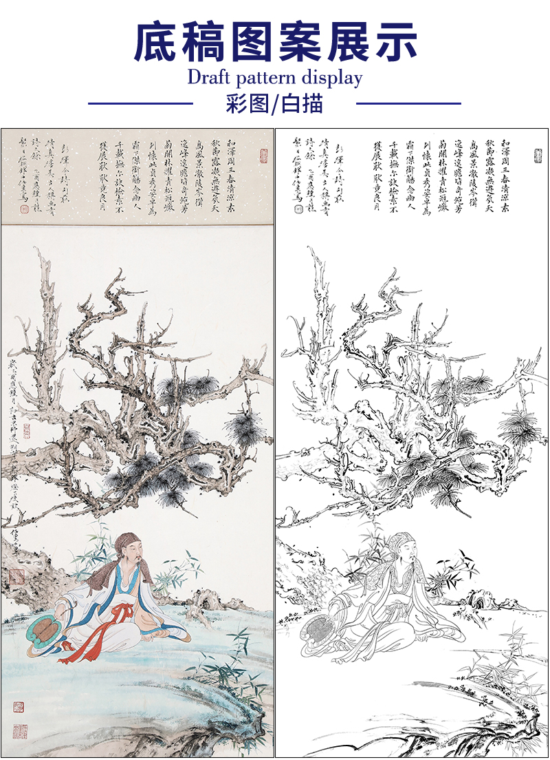 任重山水人物工笔画白描底稿《松下高仕》临摹勾线高清打印稿RD51