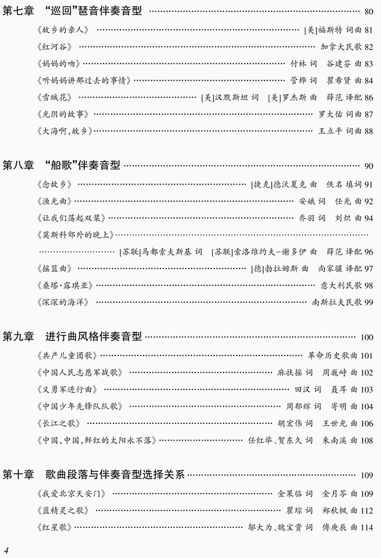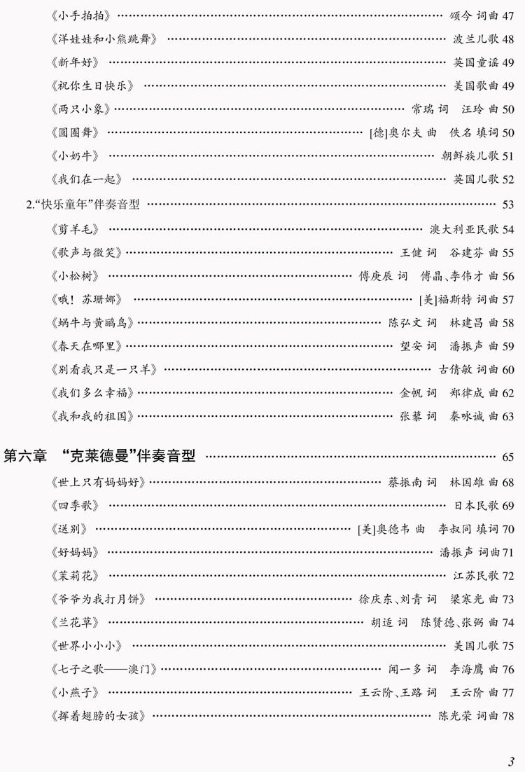 本书是“全国学前教育专业艺术类规划教材”之钢琴伴奏教材,全书共十二章,分别是:演奏须知、歌曲和声编配、大小调式正三和弦连接、近距离和弦分解伴奏音型、半柱式半分解和弦音型、“克莱德曼”伴奏音型、“巡回琶音”伴奏音型、“船歌”伴奏音型、进行曲风格伴奏音型、歌曲段落与伴奏音型选择关系、“巡回”长琶音型、花样技巧练习。书稿针对学前专业学生钢琴基础很薄弱的特点,首先介绍了钢琴即兴伴奏的入门理论知识,如本书在指法、和弦的标记知识,简单的和弦连接练习等,尽量以最简单、有效的方式让学生易于理解、掌握。随后是大量的歌曲弹奏练习,作者精选了经典的、幼儿园传唱较广的儿歌作为范本,以歌曲适合的伴奏音型分类练习。值得一提的是(也是考虑到学前专业学生的钢琴基础),在每首歌曲下面,作者都列出了该曲的伴奏音型,并以简明的标记标在歌曲旋律里面,学生看到每首曲子,只需要熟悉下伴奏音型、旋律,就可以立马双手配合弹奏,非常有效、实用!本书歌曲采用简谱记谱,但考虑到各所学校的教学实际情况,以便更好的满足广大学前教育专业师生使用,我们附上了每首歌曲的线谱,同样附有伴奏音型、和弦标记,供广大师生参考使用。