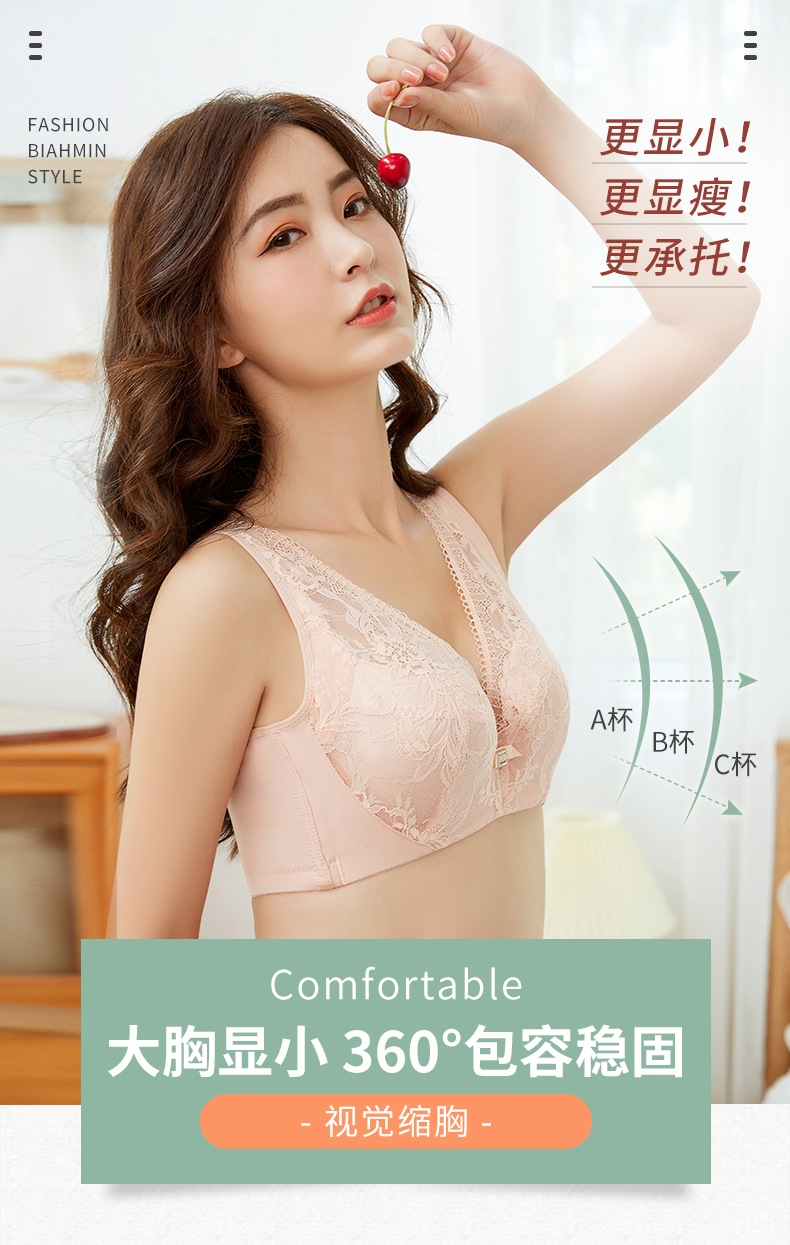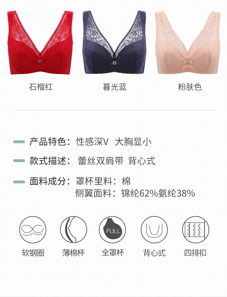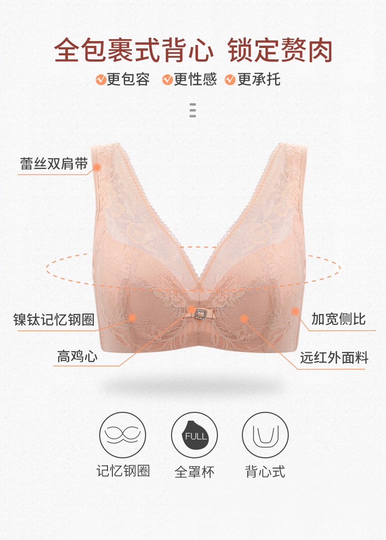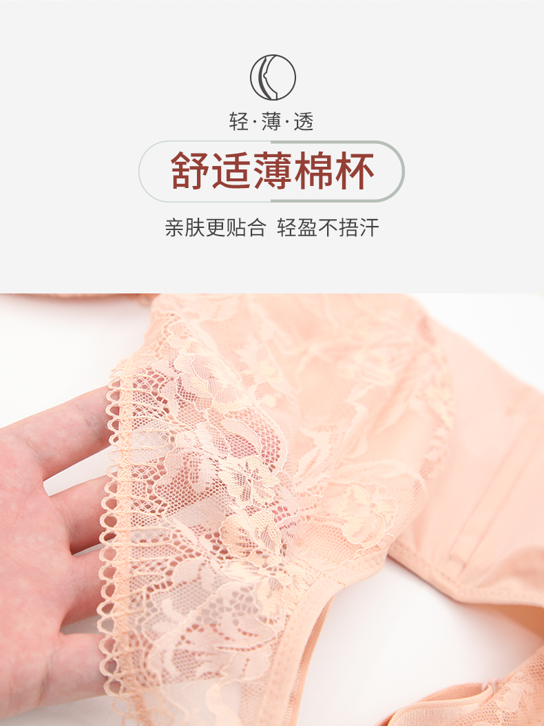 贝佳人夏季新全罩薄棉杯亲肤内衣蕾丝双肩带美背胸罩收副乳外扩BW96804