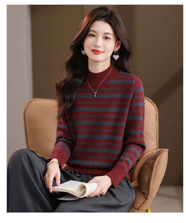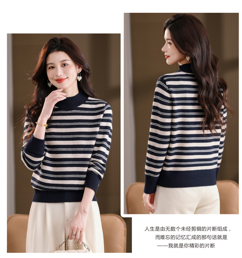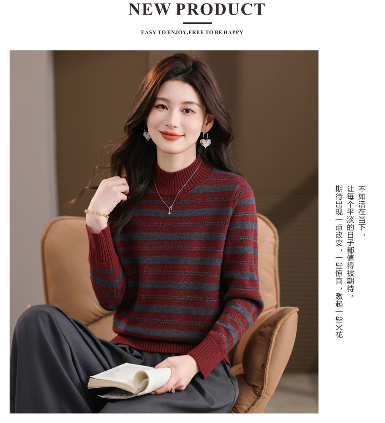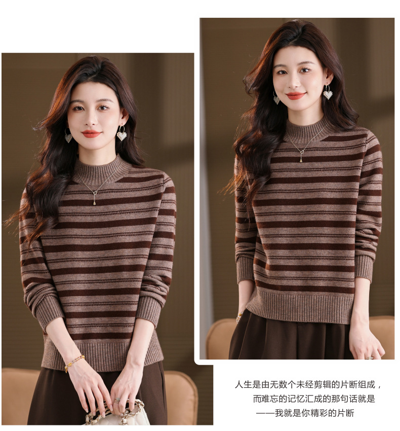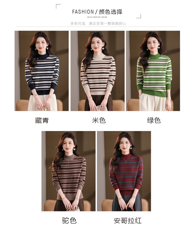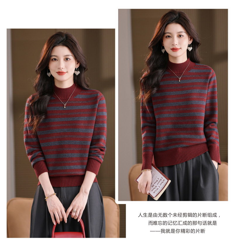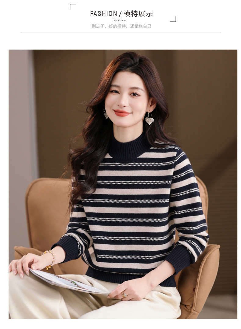 CC半高领条纹毛衣女秋冬季2025新款厚款保暖妈妈打底衫洋气内搭上衣