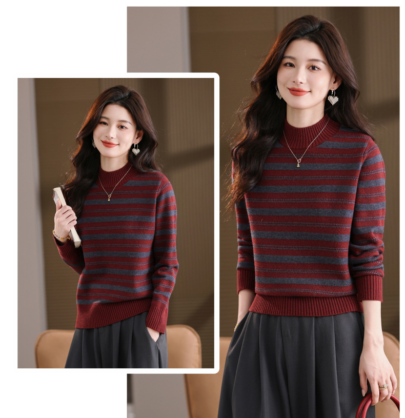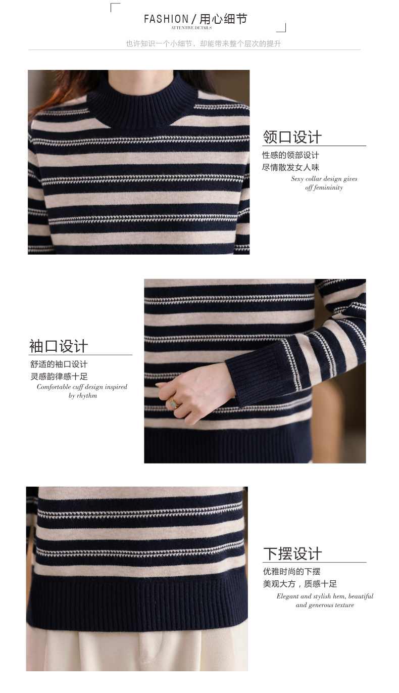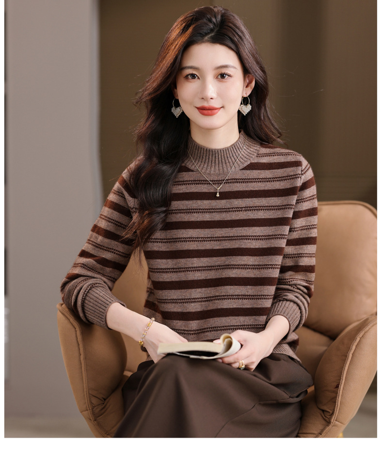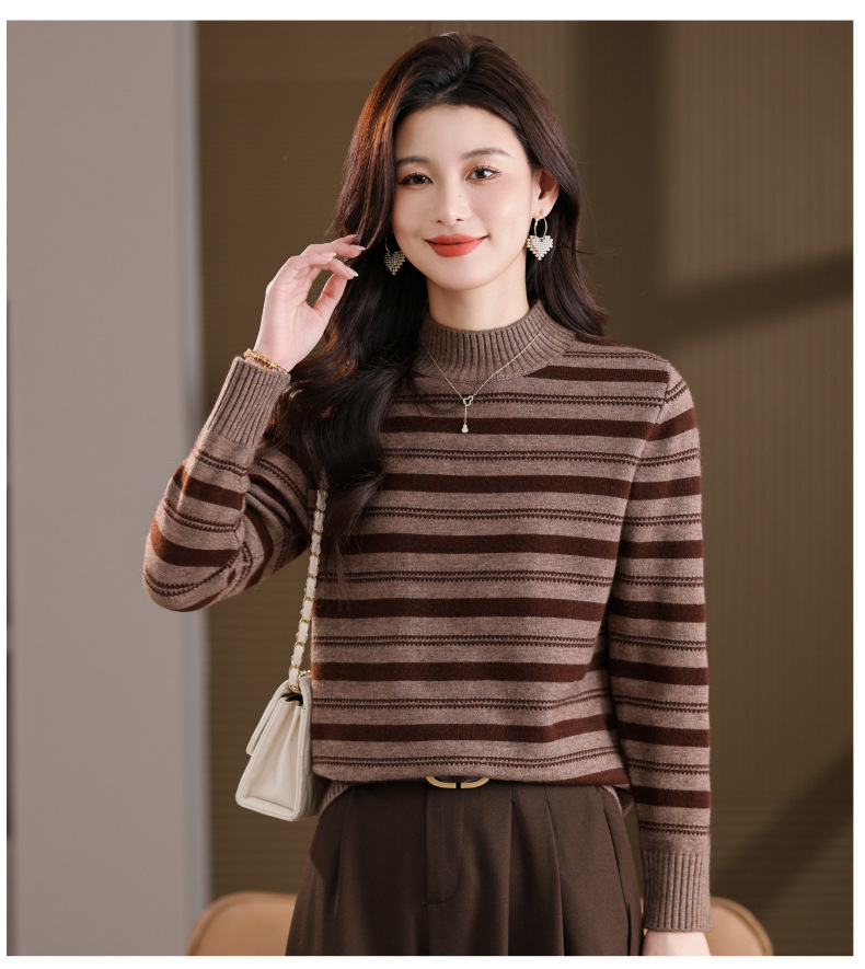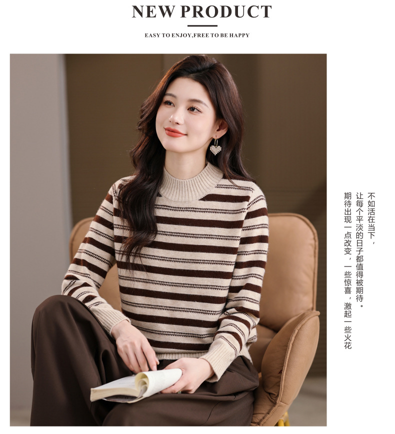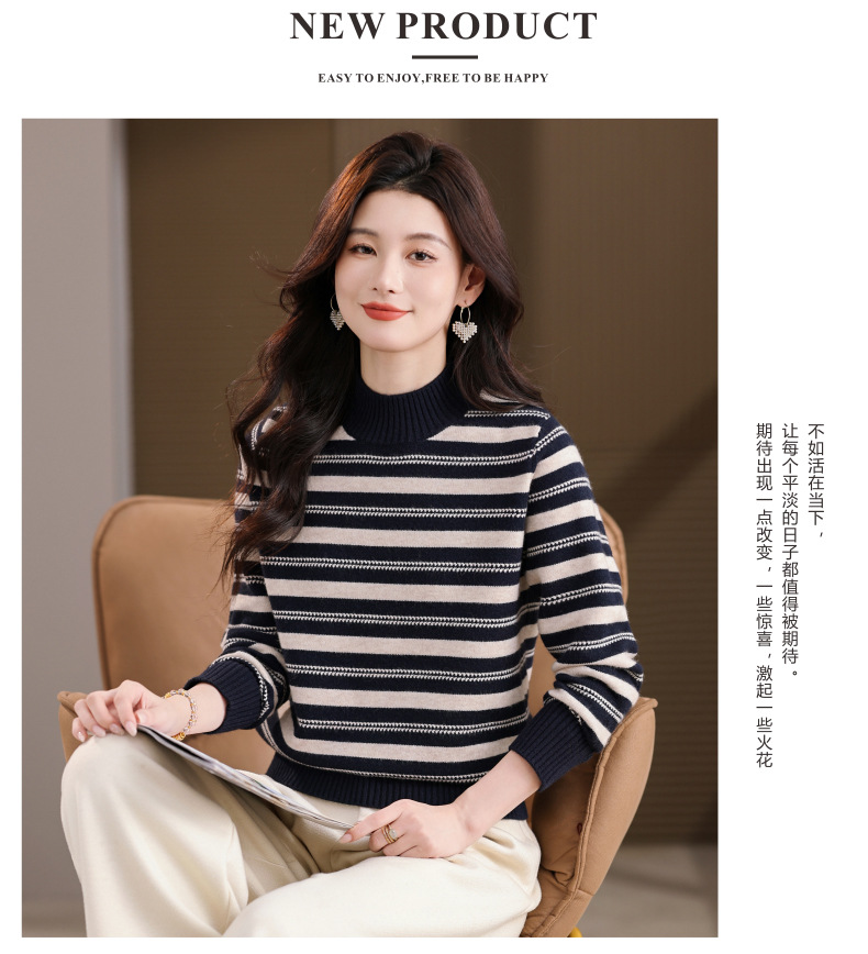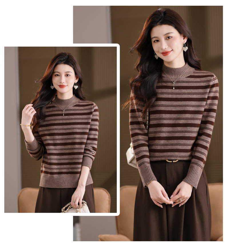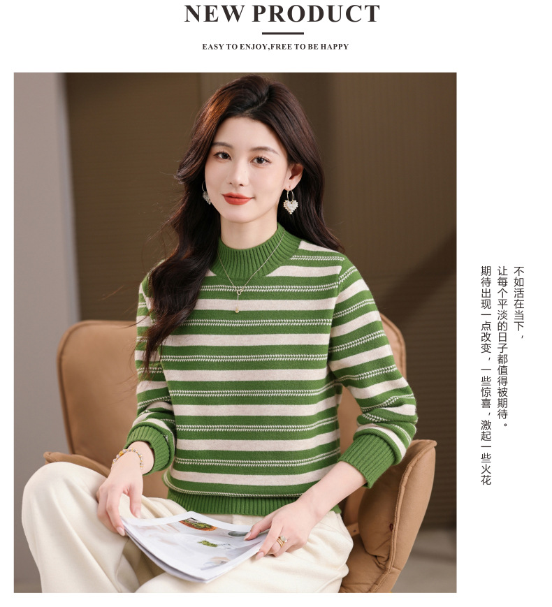 CC半高领条纹毛衣女秋冬季2025新款厚款保暖妈妈打底衫洋气内搭上衣