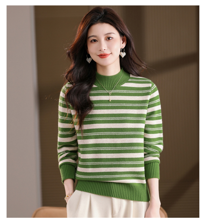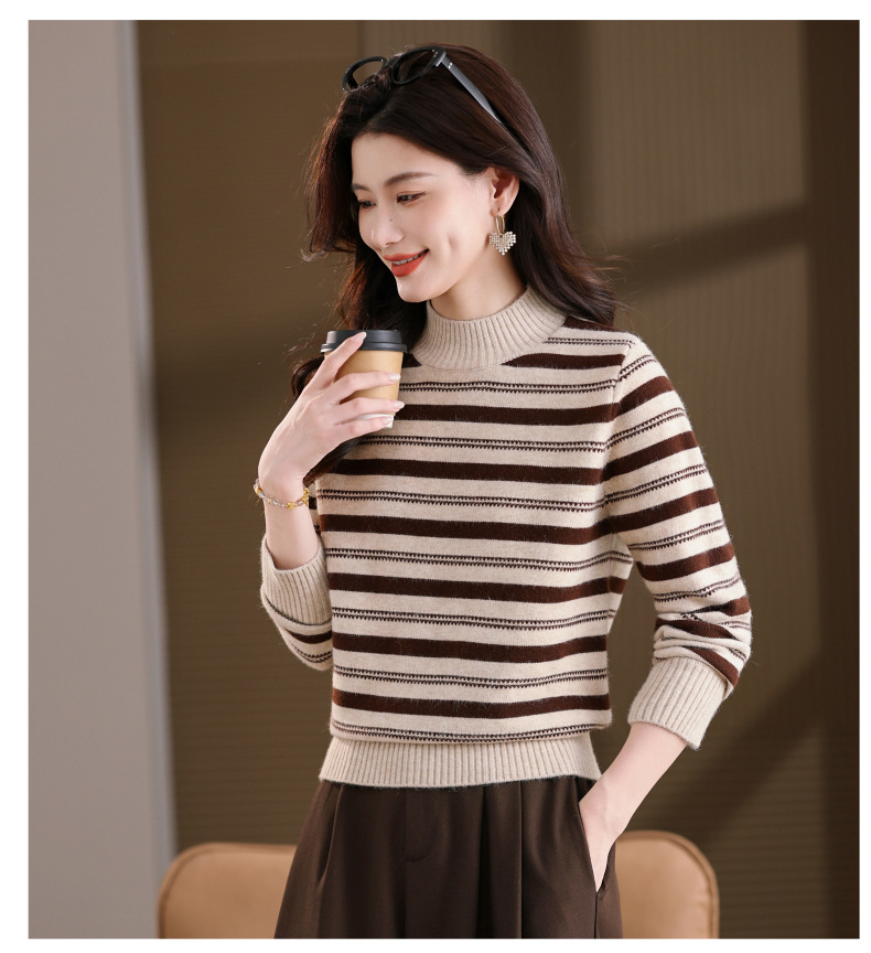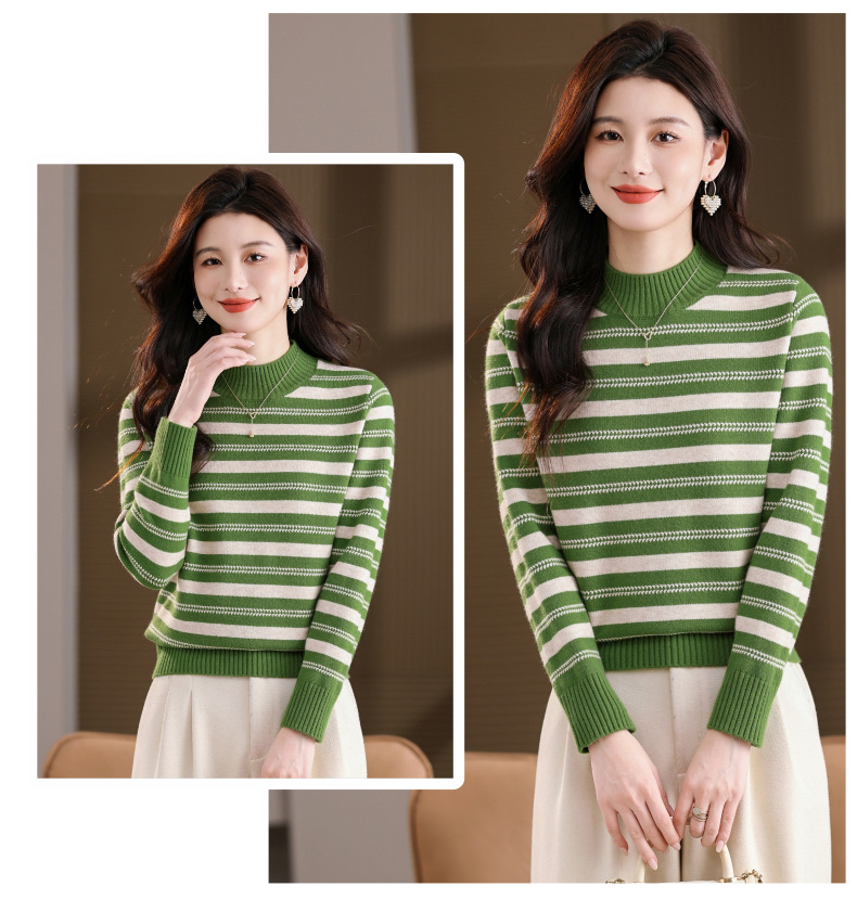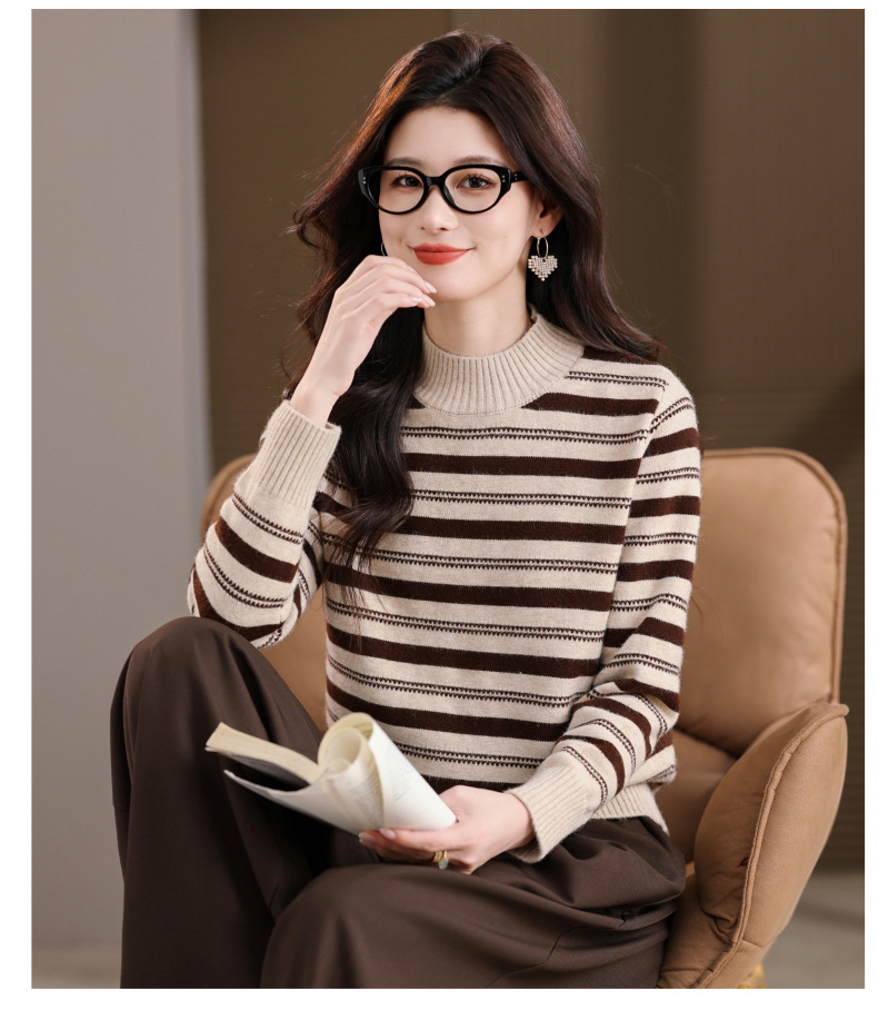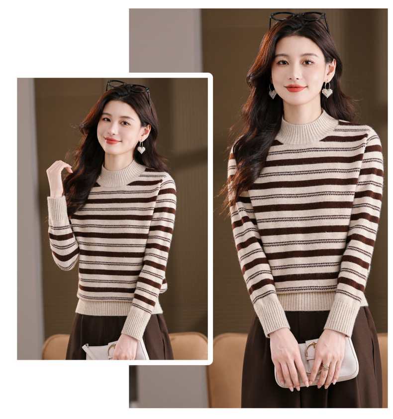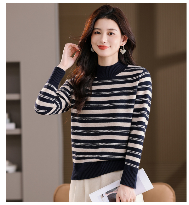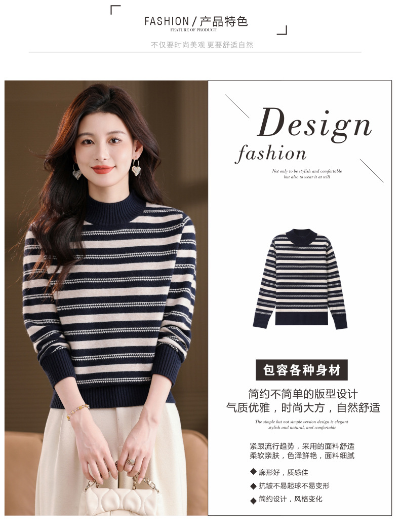 CC半高领条纹毛衣女秋冬季2025新款厚款保暖妈妈打底衫洋气内搭上衣