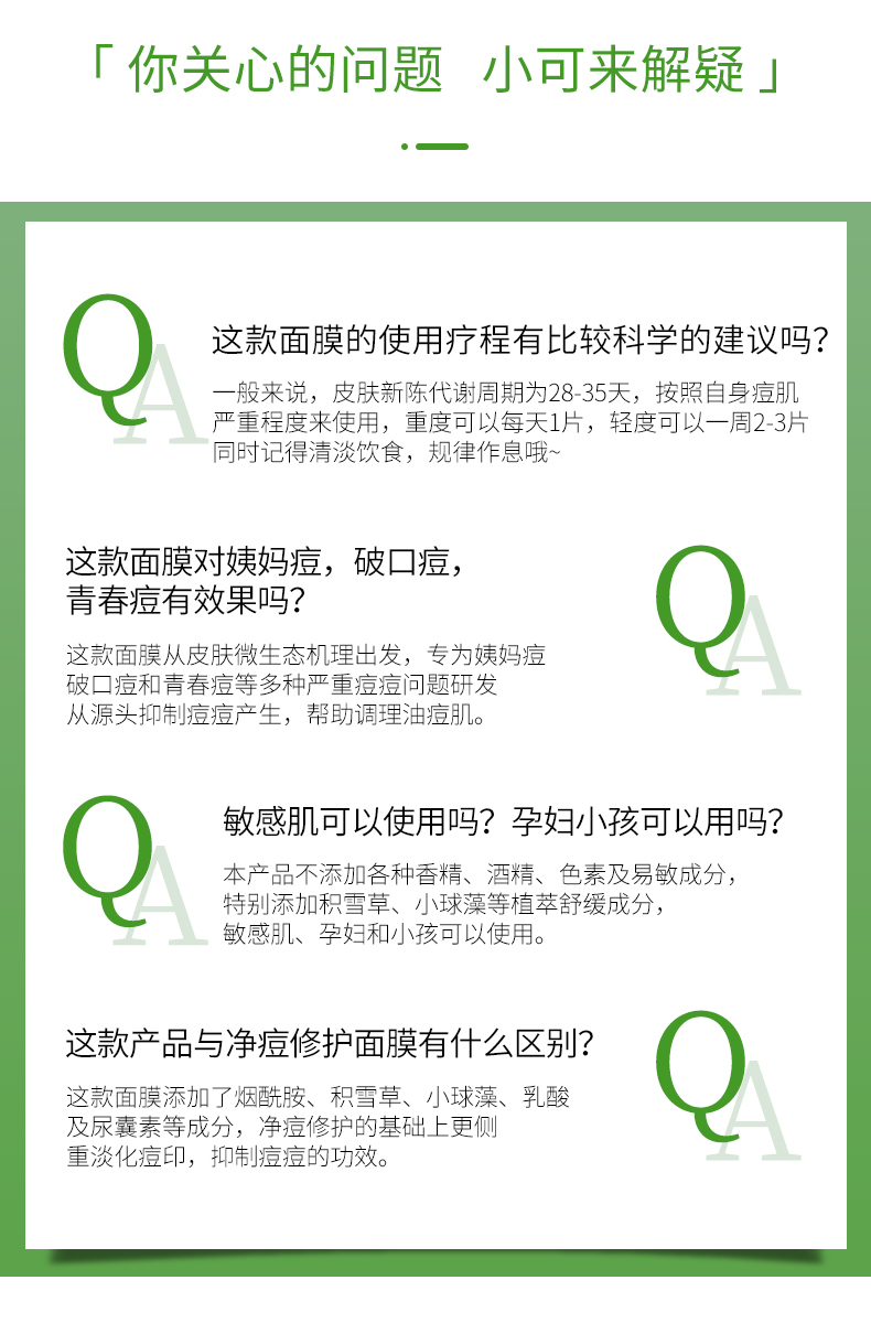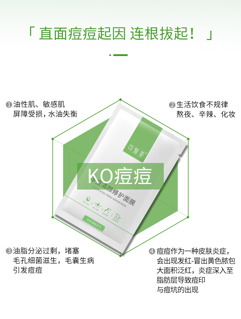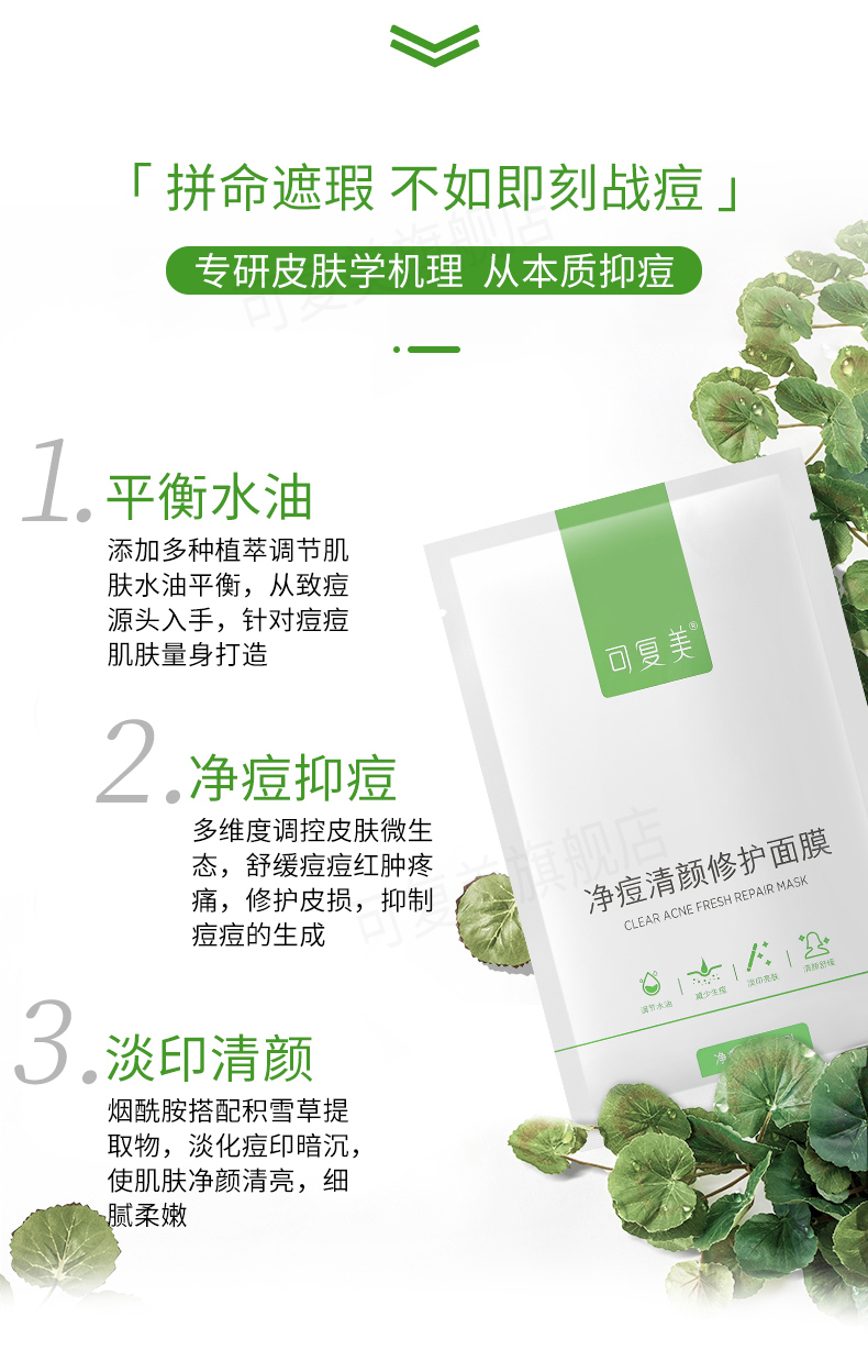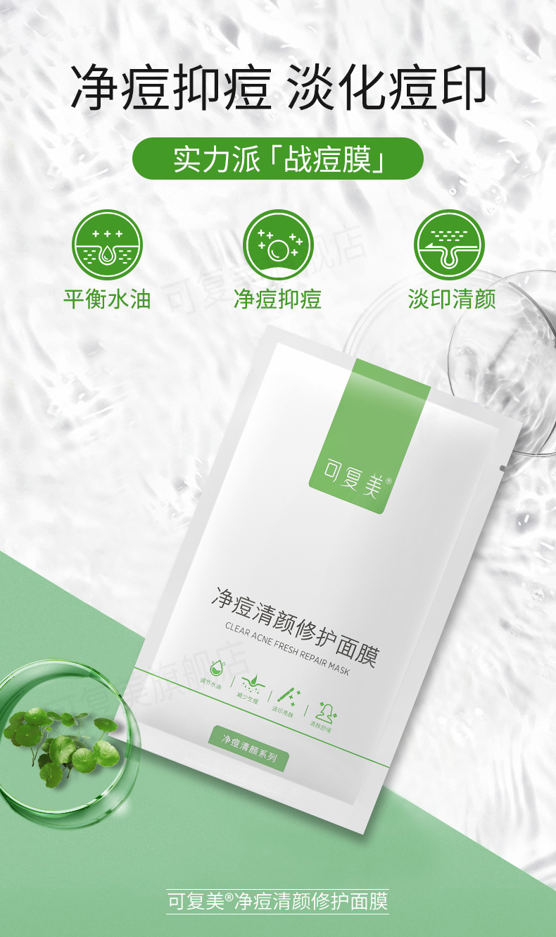 可复美控油净痘粉刺面膜淡化痘印平衡水油净痘积雪草修护面膜5片