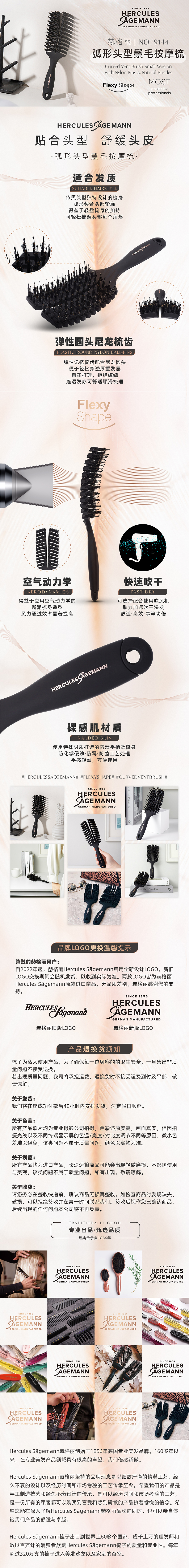 贴合头型 舒缓头皮 德国 Hercules Sägemann赫格丽 弧形猪鬃修护梳
