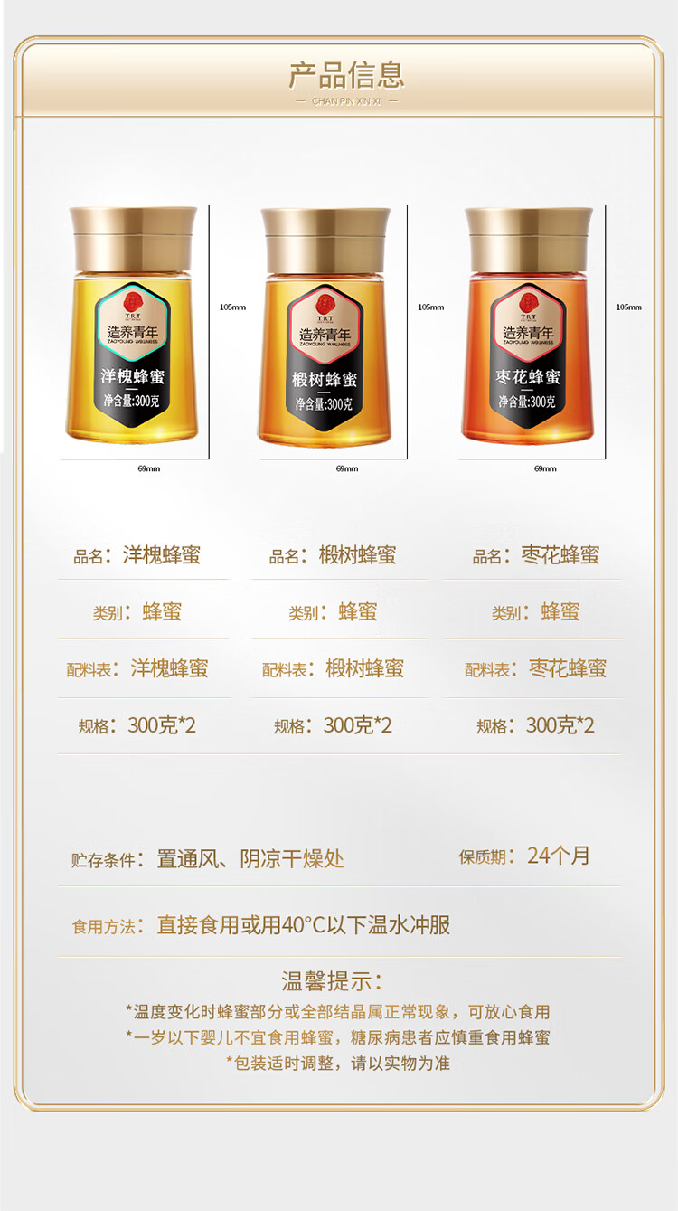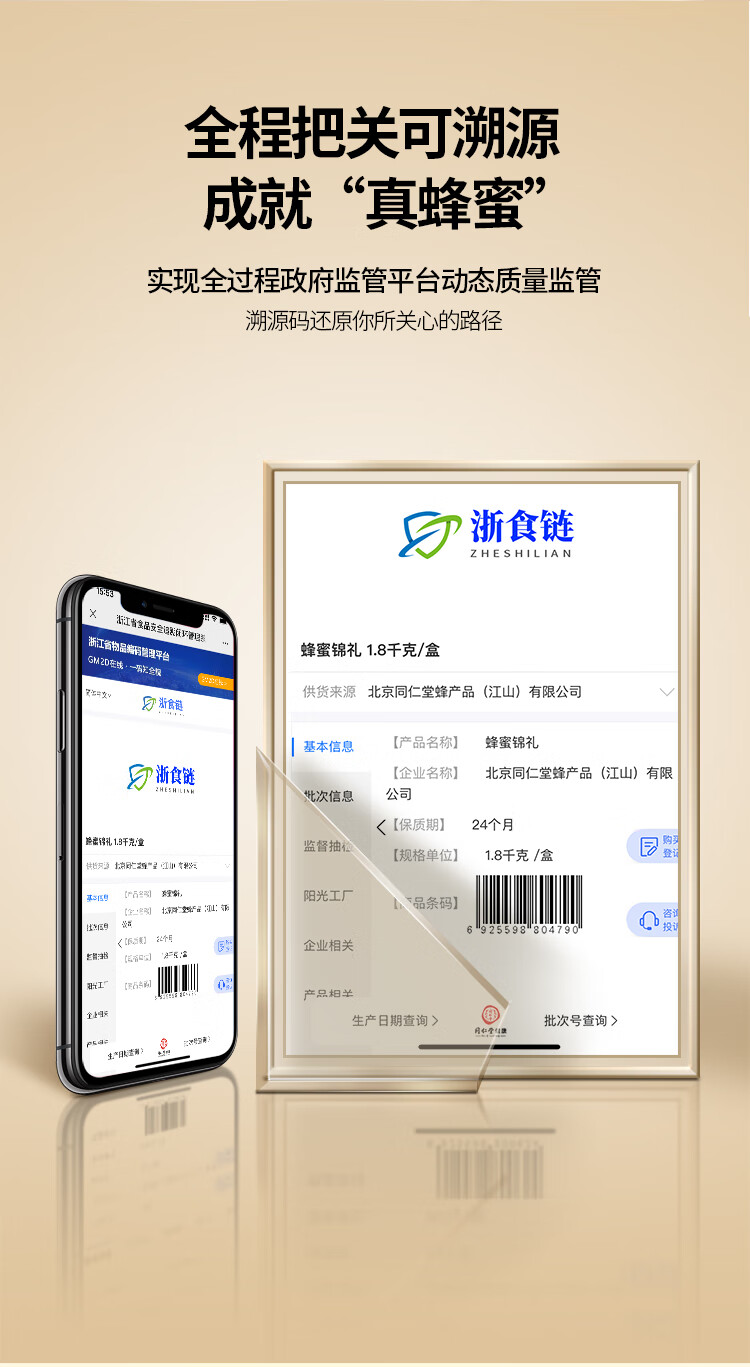 【正宗同仁堂品牌】北京同仁堂 蜂蜜锦礼1.8kg礼盒(枣花蜂蜜300克×2,洋槐蜂蜜300克×2,椴树蜂蜜300克×2) 拒绝添加 可溯源SY