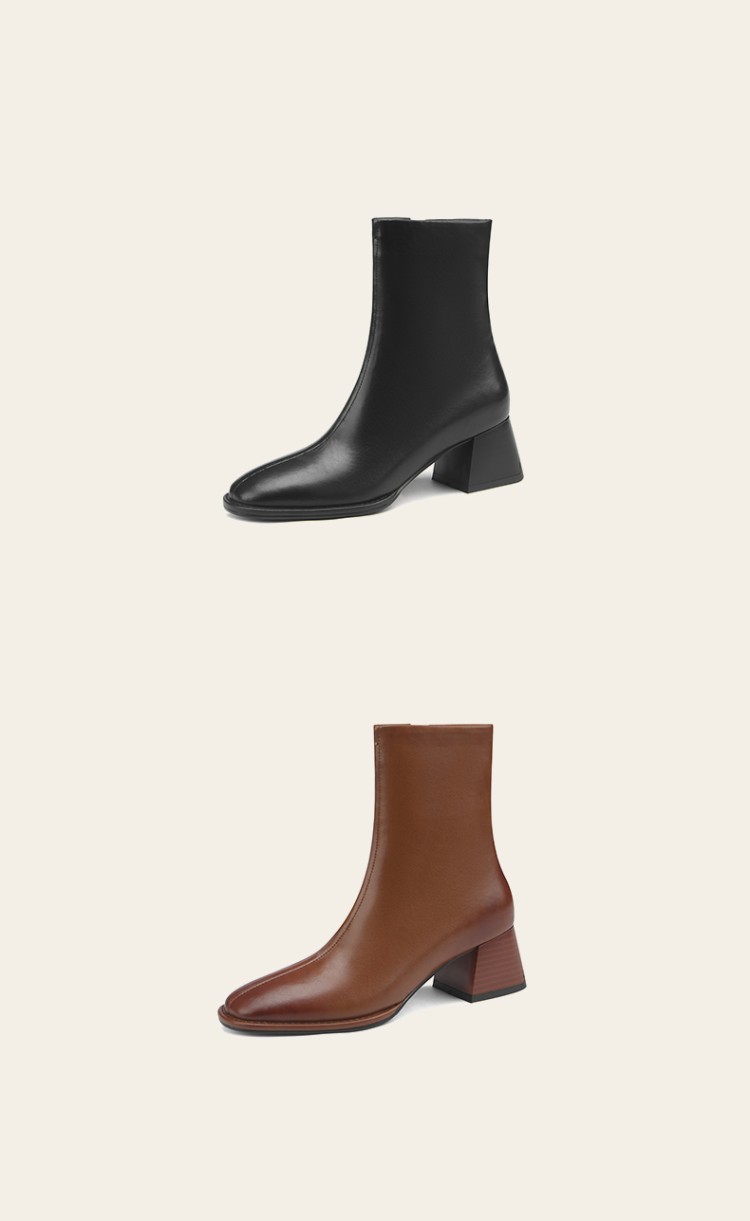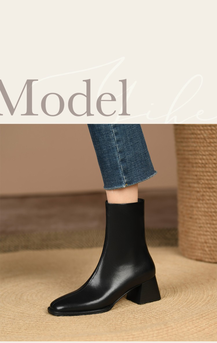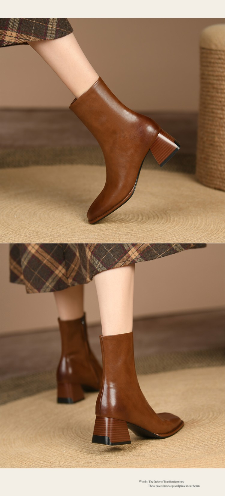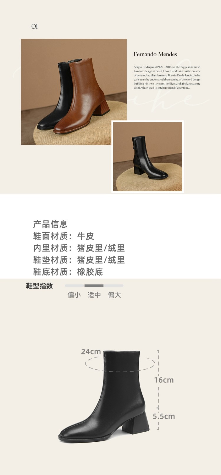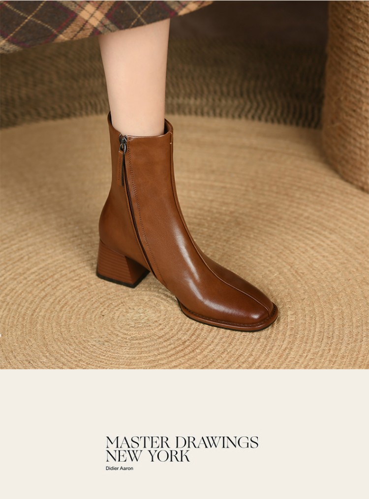 【预售5天】法式复古方头短靴粗跟鞋子中跟马丁靴高跟百搭时尚靴子&A601-2