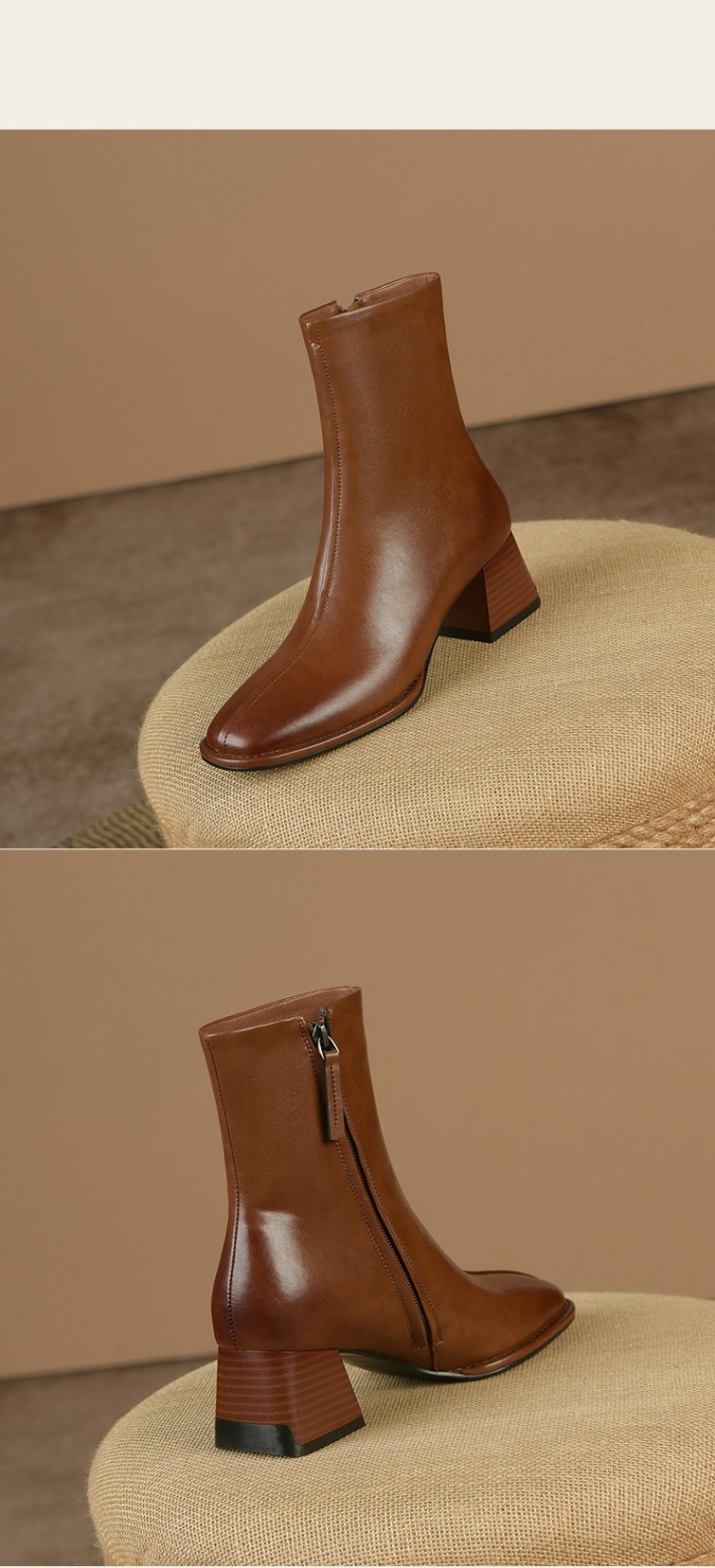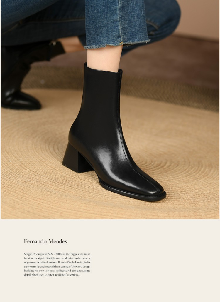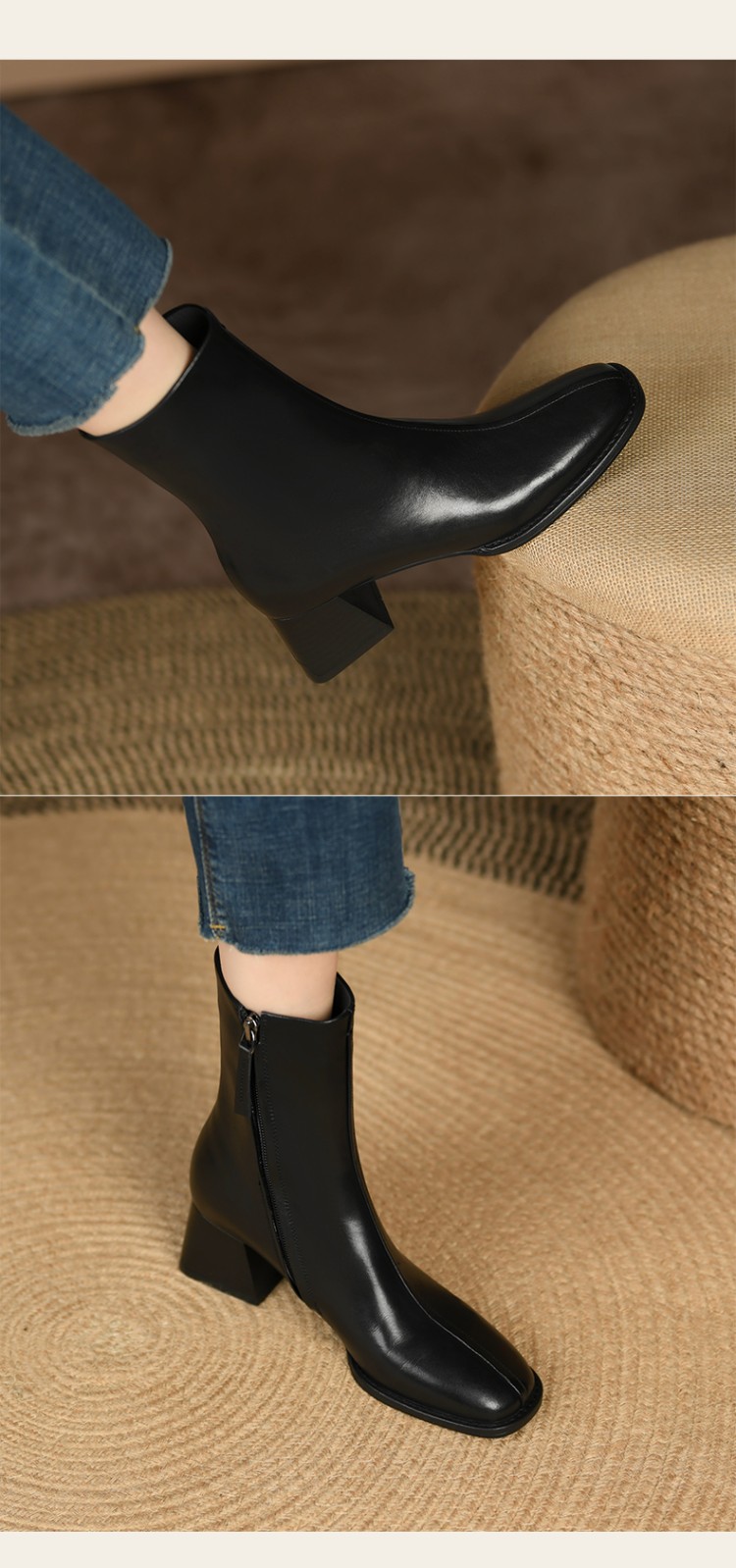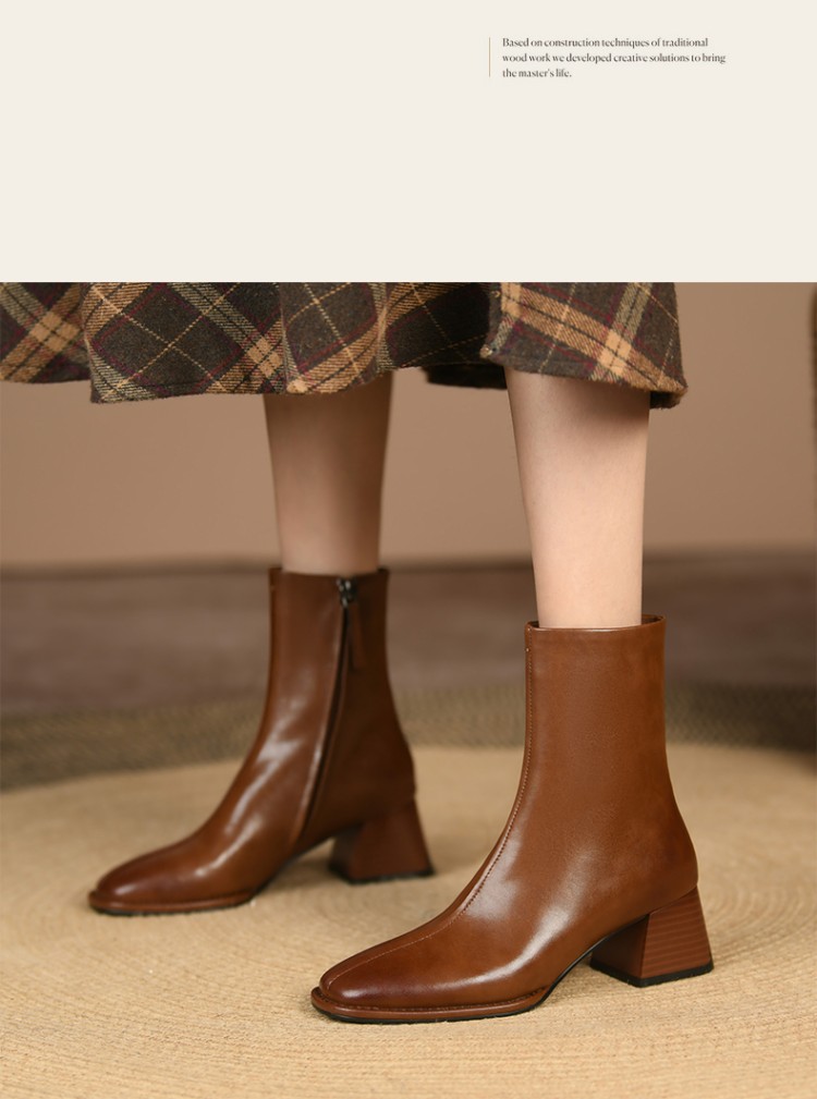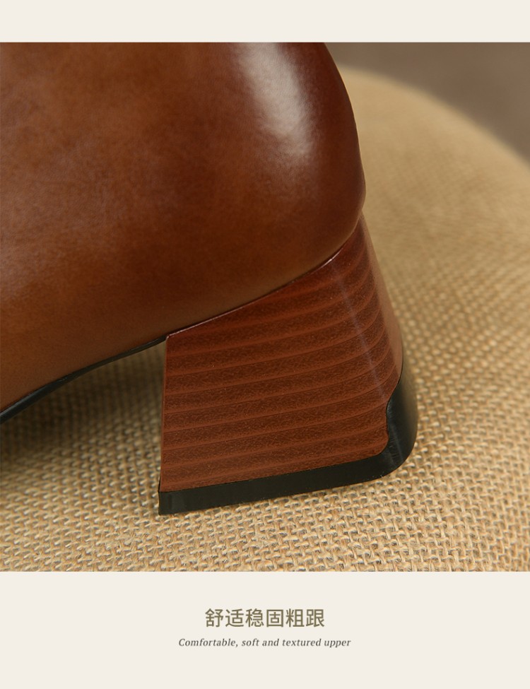 【预售5天】法式复古方头短靴粗跟鞋子中跟马丁靴高跟百搭时尚靴子&A601-2