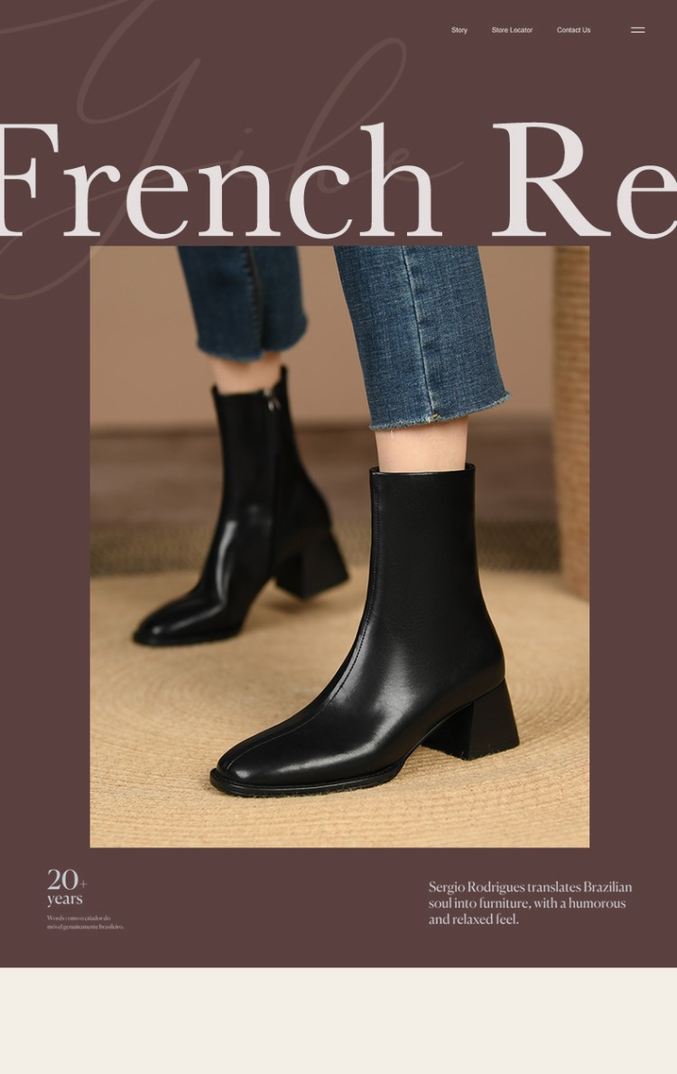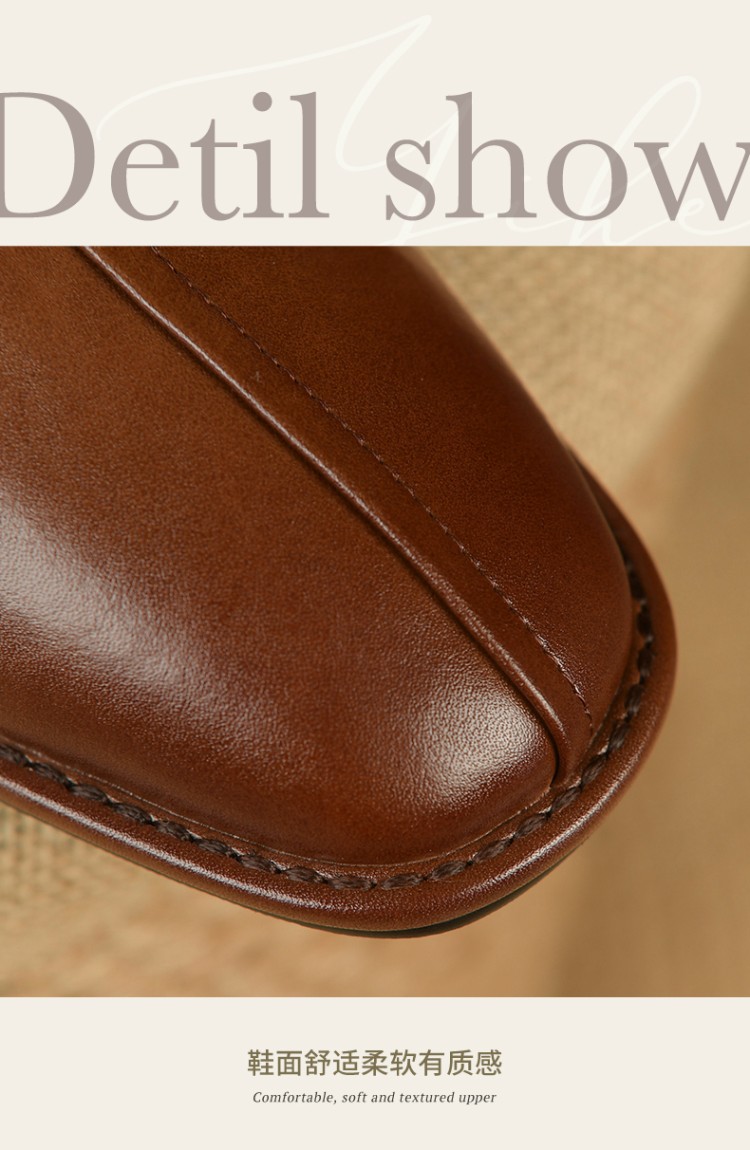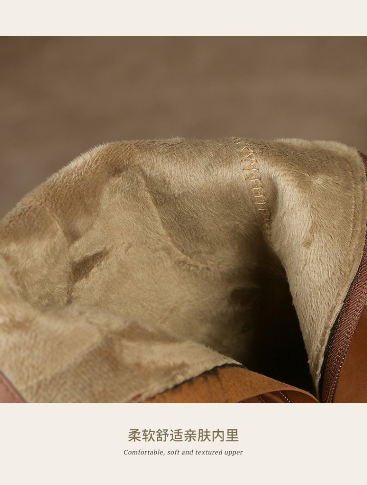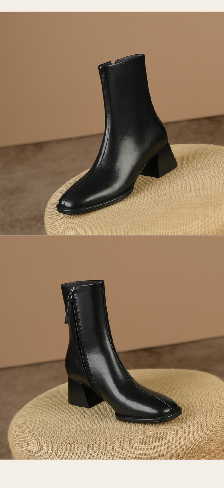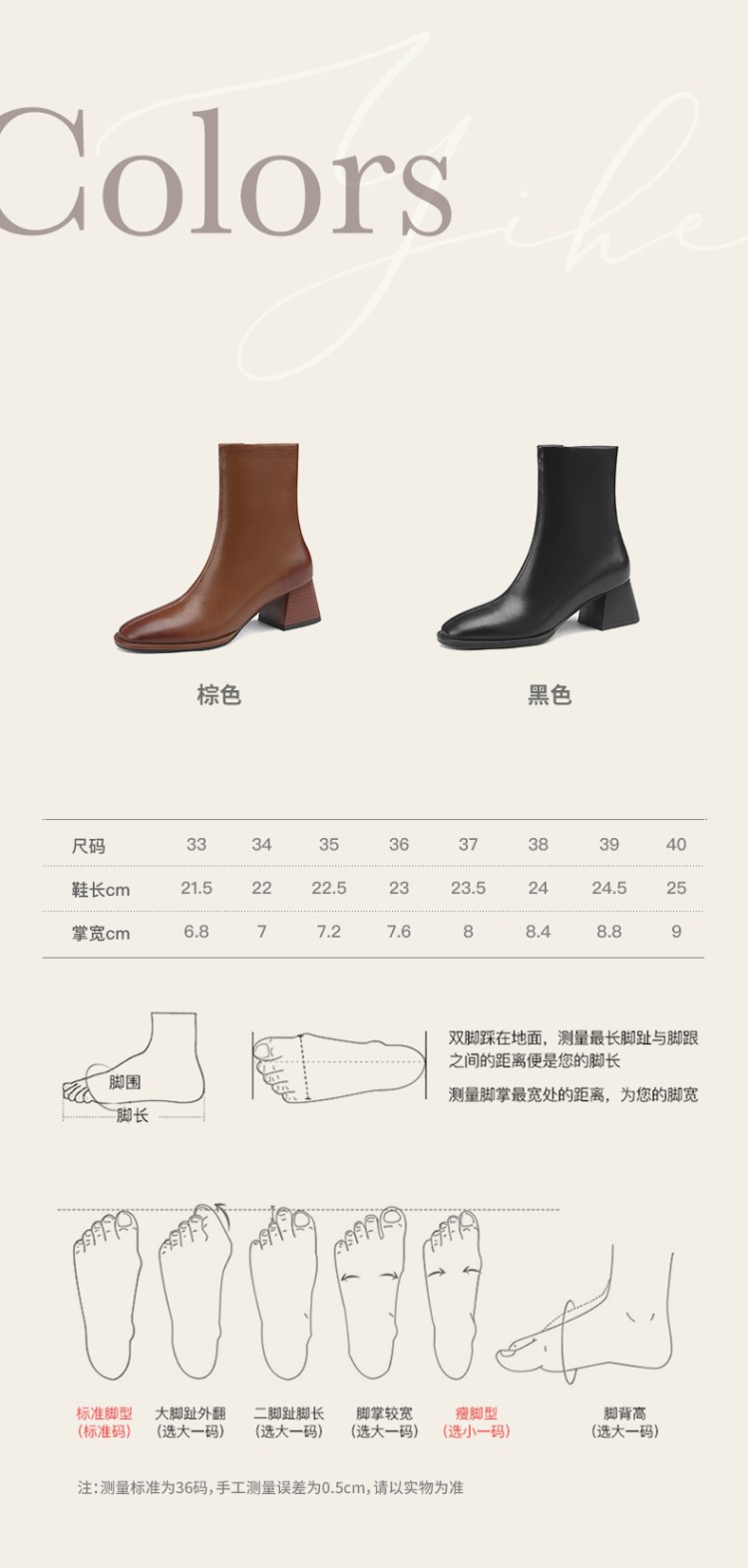 【预售5天】法式复古方头短靴粗跟鞋子中跟马丁靴高跟百搭时尚靴子&A601-2