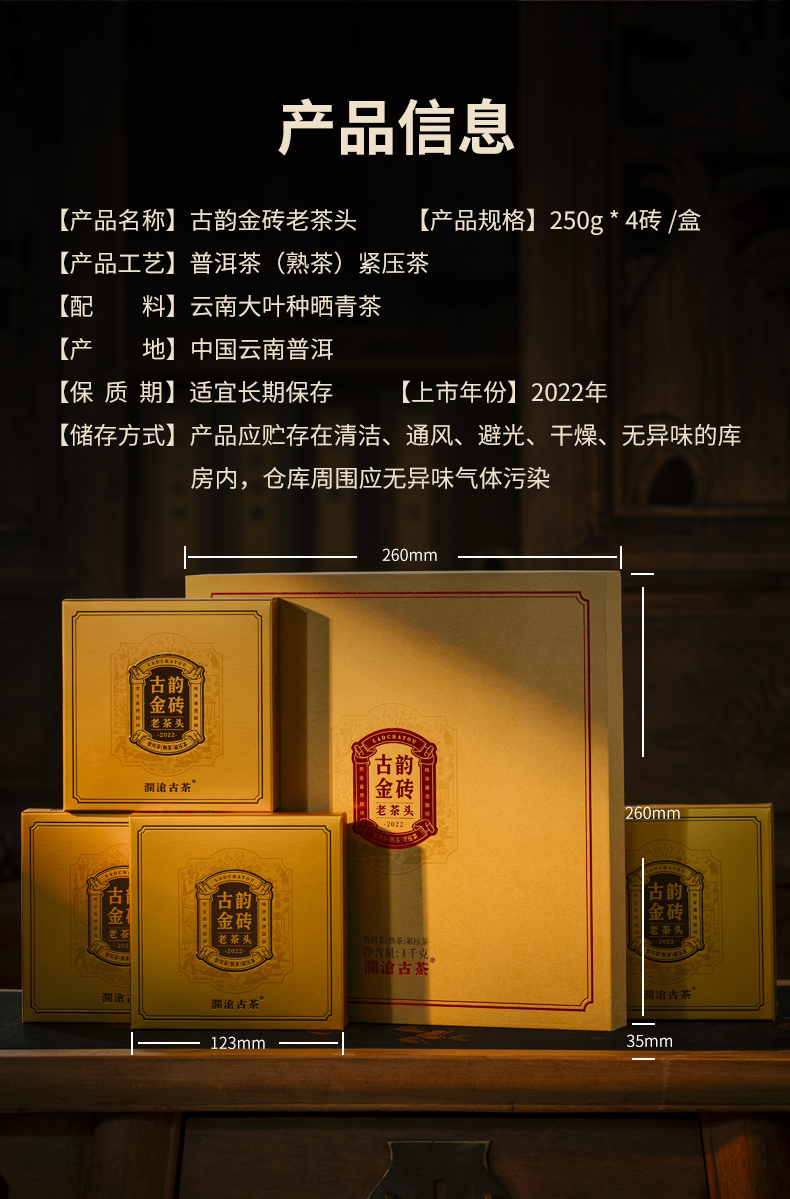 澜沧古茶2022古韵老茶头金砖250g*4