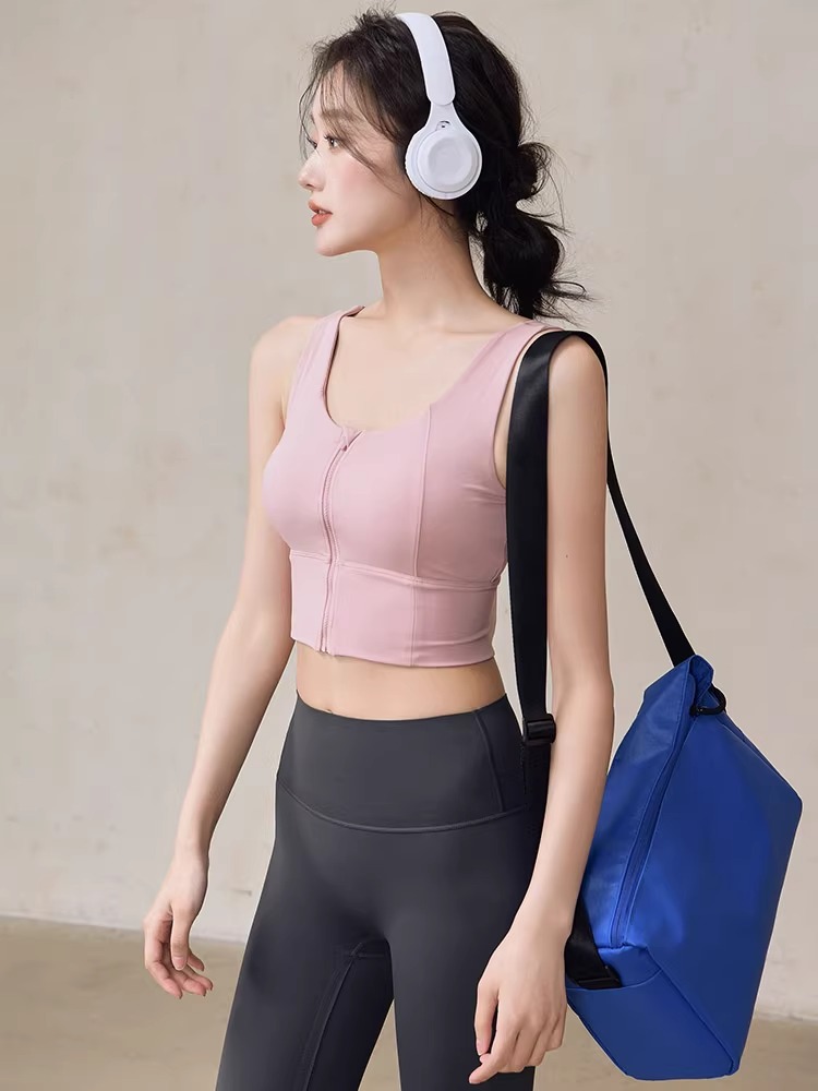 跃牌【安琪拉系列】新款高强度运动内衣防震前拉链防下垂裸感瑜伽服背心带胸垫WX407