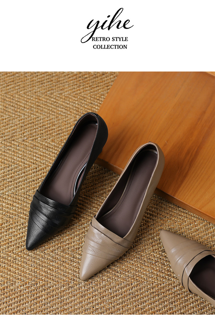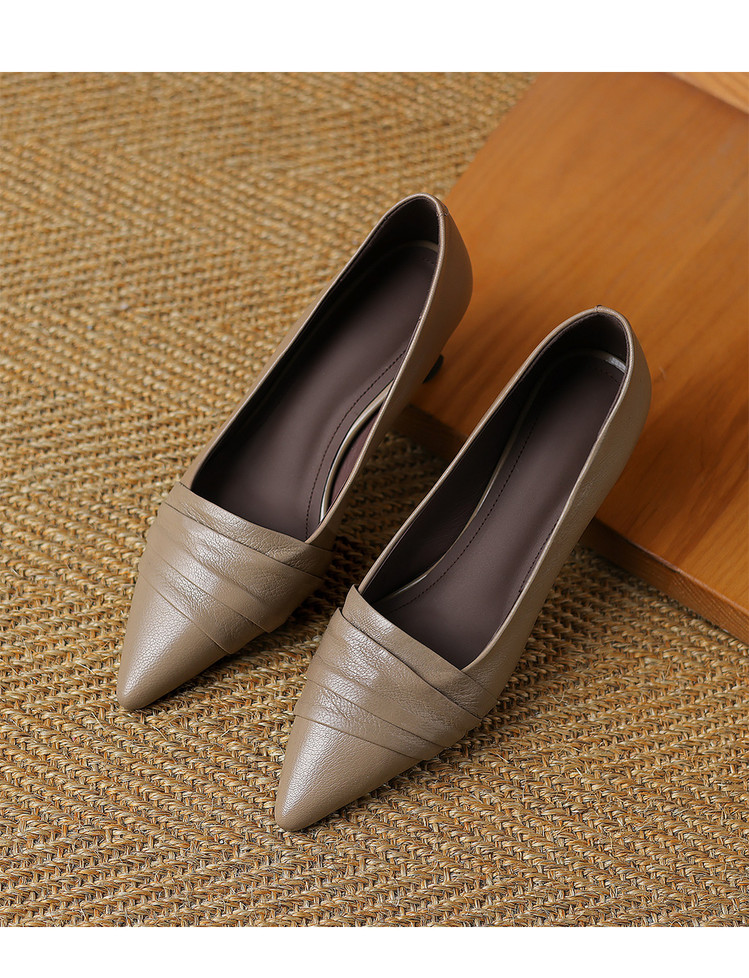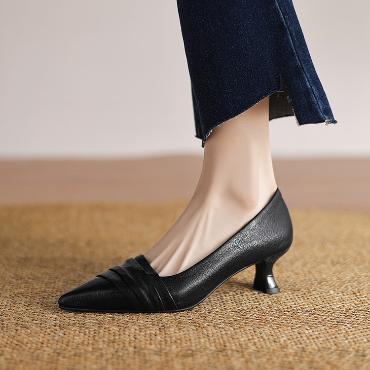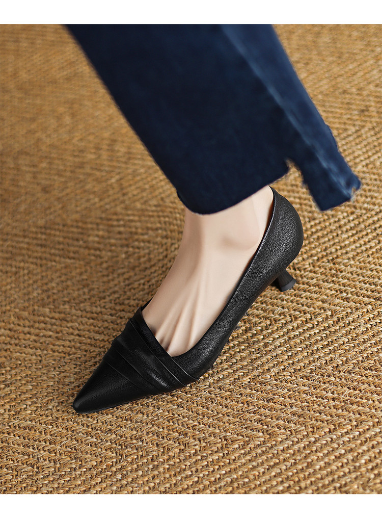 【预售5天】法式浪漫~真皮皱褶粗跟浅口单鞋气质百搭OL高跟鞋女真皮JLY&18-593