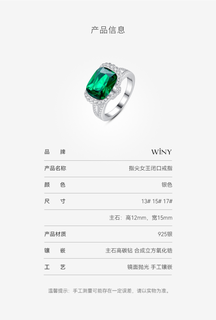 Winy925纯银指尖女王戒指送女友闺蜜节日生日礼物