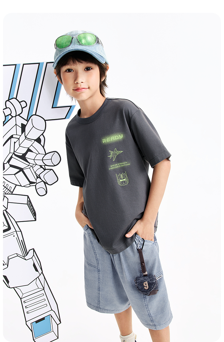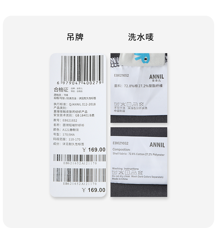 男童圆领短袖针织衫夏季新款安奈儿童装EB621652